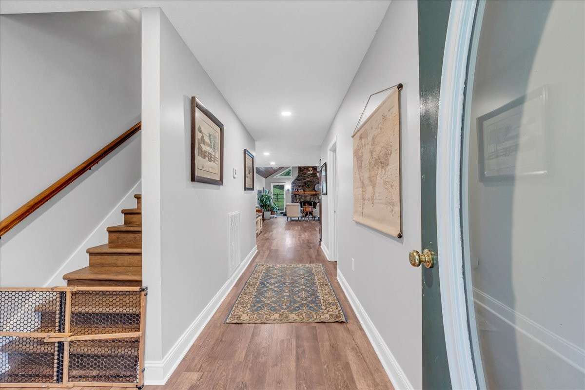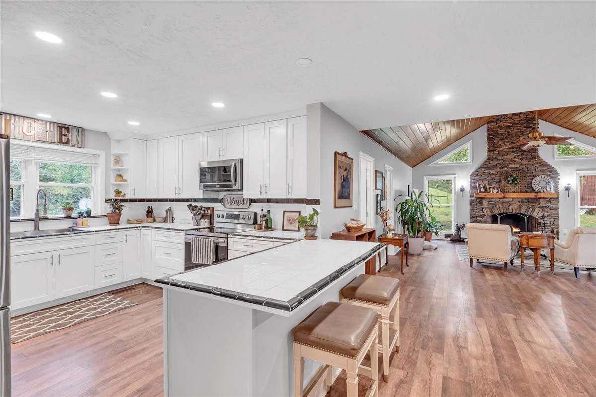 Step inside to find Laminate floors flowing throughout the main living areas and a spacious, open layout perfect for family living or entertaining. The inviting living room features a stunning stacked- stone wood- burning fireplace, creating a cozy centerpiece for gatherings. A large formal dining room provides plenty of space for hosting holidays or special dinners.