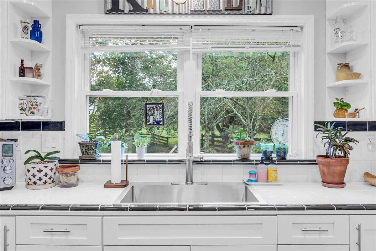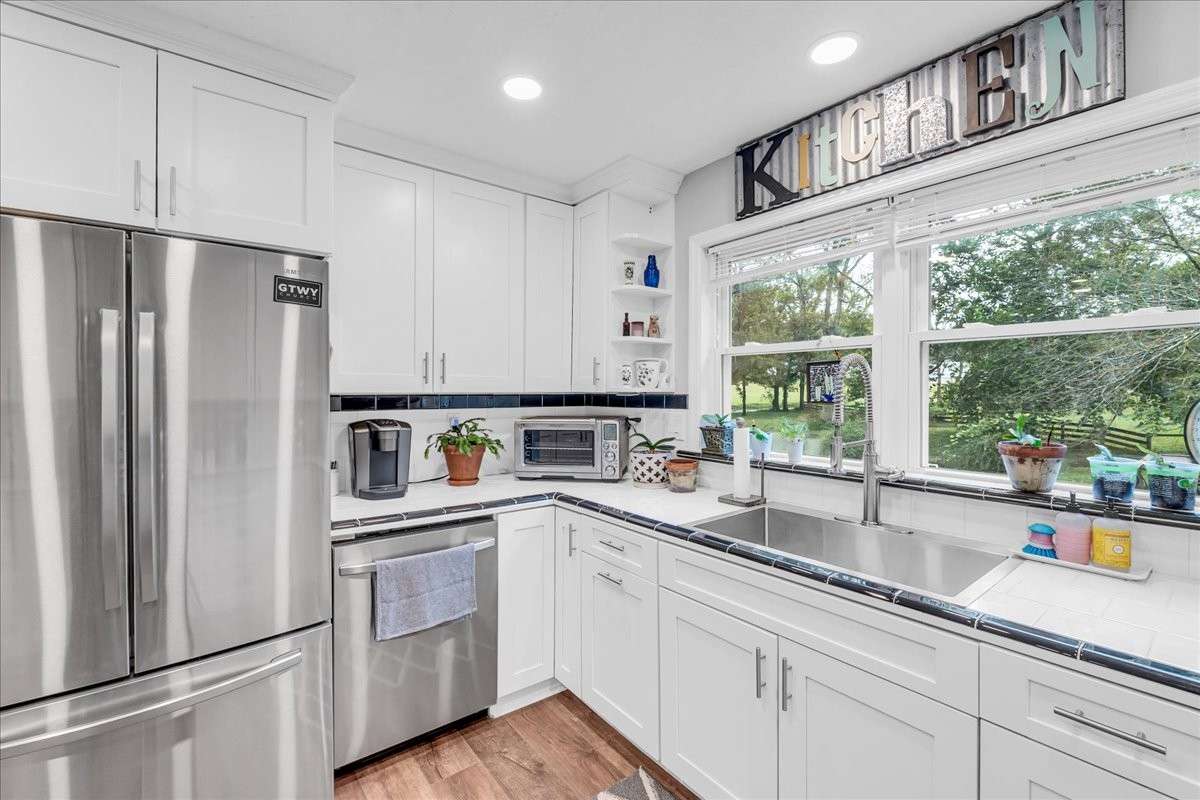 Outside, you’ll fall in love with the property’s natural setting—multiple fenced pastures ready for livestock, a year- round creek and spring, and abundant wildlife, including deer and turkey that frequently visit. Enjoy quiet mornings or relaxing evenings on the beautiful covered front porch overlooking your private landscape.