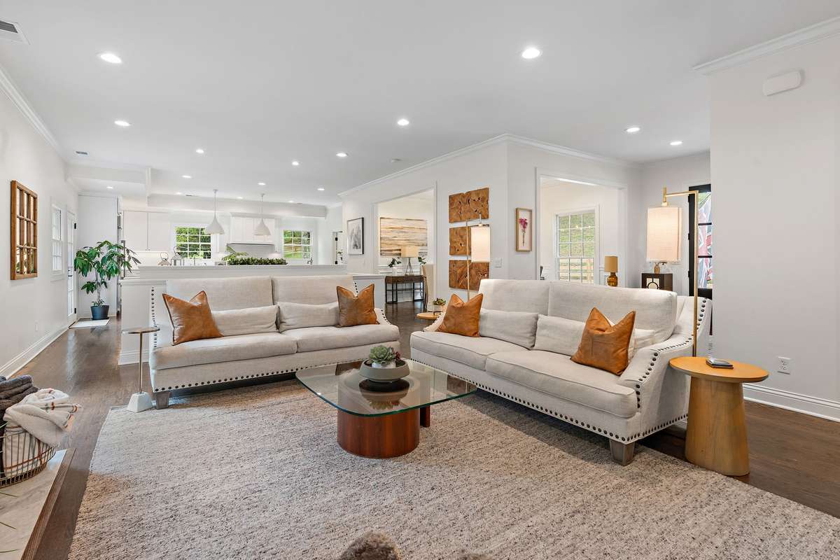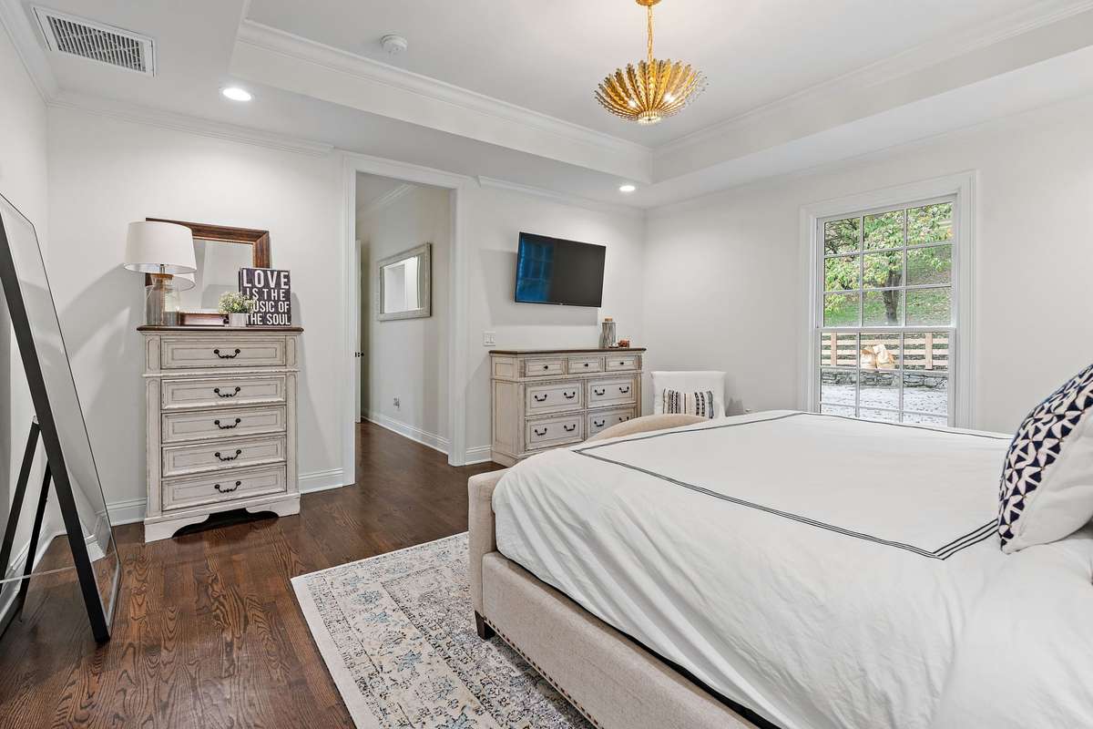 Set above the street on a private, wooded 1. 1- acre rise, 5622 Hillview delivers estate privacy with true in- town convenience. Fully renovated and move- in ready, the home lives bright and open with sightlines to trees from every room. Main level features a generous primary suite, a guest bedroom, formal dining, a custom kitchen built for daily use and entertaining, and a large living room with fireplace. The lower level adds a second living room with fireplace and wet bar, two additional bedrooms and full baths, plus an office, ideal for guests or an in- law suite. Ten- foot ceilings on the main, wide- plank hardwoods, custom built- ins, and quality finishes throughout. Outside, the setting feels quiet and protected, with a fully fenced front lawn and mature canopy. Location puts you minutes to Brentwood’s Hill Center, Maryland Farms, schools, and daily amenities. Seclusion without the sacrifice, privacy without the commute.