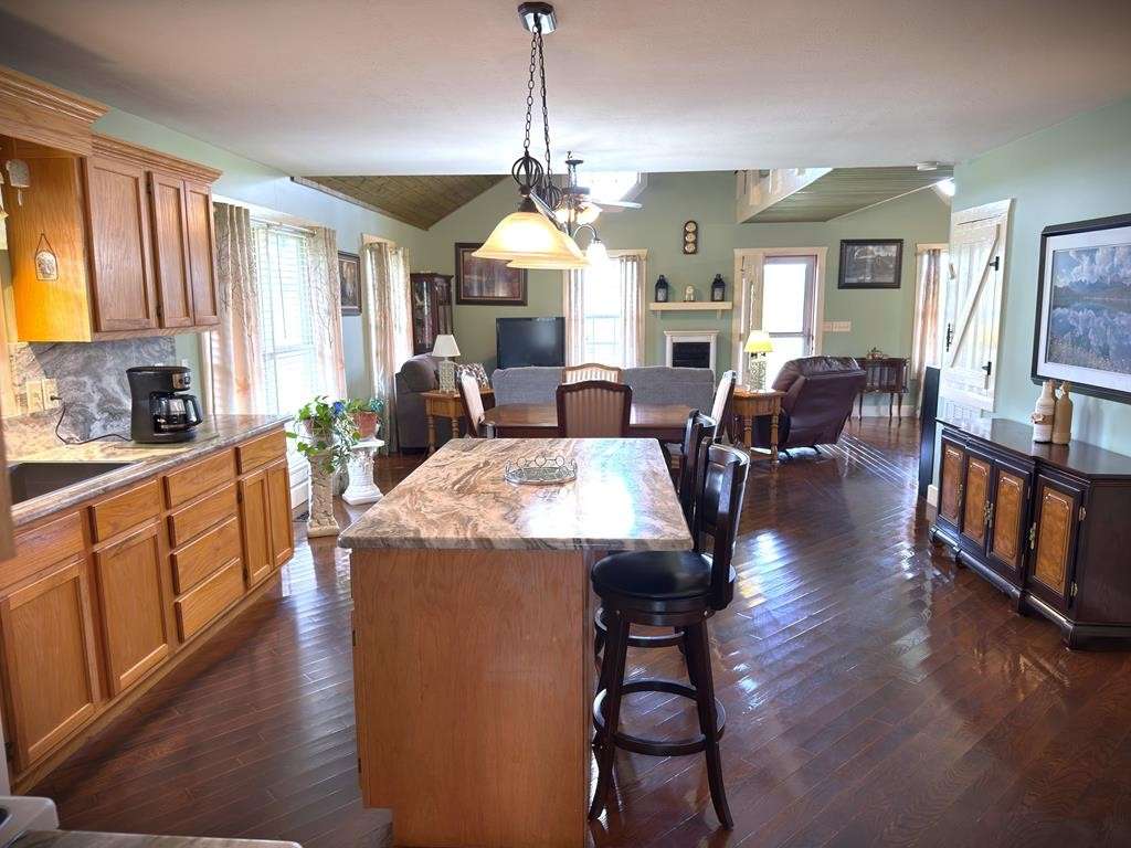 Welcome to this 1790 sqft retreat that blends rustic charm with modern comfort. Featuring a unique lake cabin feel, this 3 bed, 2. 5 bath home is perfect for anyone seeking a warm inviting atmosphere surrounded by natural beauty. Rich hardwood floors, granite countertops, soaring ceilings, and even a catwalk out to an upstairs balcony make this house one of a kind! Large windows fill the home with natural light and the wraparound deck allows you to enjoy breathtaking mountain views at any time of the day. Finish off this amazing property with a massive detached garage/ workshop with half bath, walkout crawl space for easy access and an extra lot making the total land 1. 6 acres. This property has it all! Seller to provide a one- year Home Warranty
