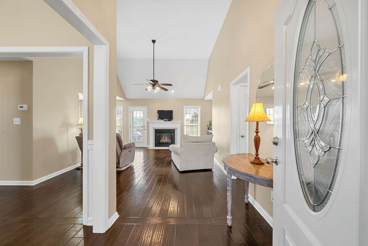 Step inside this well maintained ranch style home featuring a split bedroom plan, freshly painted interiors and gorgeous hardwood flooring throughout the entry, dining room, family room, and primary suite. The spacious family room is warm and welcoming with a vaulted ceiling and a cozy gas log fireplace, perfect for gathering and relaxing. The kitchen is designed for both function and style, offering stainless steel appliances, a generous pantry, and ample cabinet and counter space—ideal for everyday living and entertaining. The primary bedroom has a vaulted ceiling, ceiling fan, and a spacious ensuite bathroom complete with a double- sink vanity, garden tub, separate shower, and a large walk- in closet. The partially finished basement offers incredible flexibility with a spacious multi- purpose room and full bath, making it perfect for a Rec Room, home office, playroom, media room or man cave... the choice is yours. There’s also a 2- car garage with exceptional storage—including a 9’x20’ storage area in the garage and an additional 8’x31’ storage room in the unfinished portion of the basement. Enjoy outdoor living with an open deck on the main level and a concrete patio below, overlooking 2. 6 acres with a small creek at the rear of the property. This home offers a rare opportunity to own a beautiful property with acreage, no city taxes, and no HOA—all while enjoying the peace and charm of country living. Don’t miss your chance to make this your home!