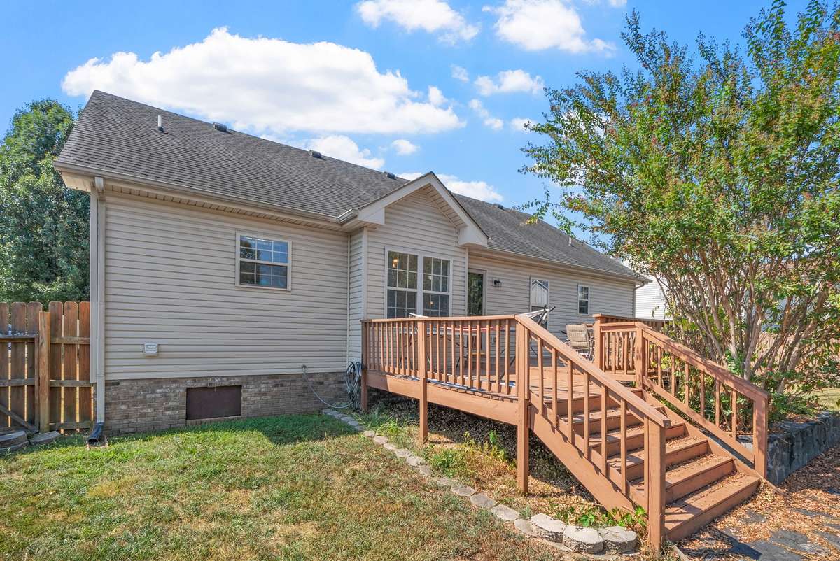 Fall in love with 3260 Veranda Cir! Conveniently located in Wildwood Crossing with NO HOA, this 1, 768 +/ - sqft home is full of charm, comfort, and thoughtful design. Step inside to a bright, open layout that flows effortlessly from the kitchen and dining areas into the living room with soaring ceilings perfect for everyday living or entertaining. All 3 bedrooms are on the main level, including the primary suite with a private ensuite and walk- in closet. Upstairs, the bonus room makes an amazing theater, playroom, or optional 4th bedroom. Step outside to a large deck and a fenced backyard with mature trees, beautifully shaded in the late afternoons and evenings ideal for relaxing, backyard fun, or a cozy Tennessee bonfire. The location is unbeatable: walking distance to Publix and just minutes to shopping, dining, I- 24, and Fort Campbell. Spacious, inviting, and perfectly positioned. This one truly checks all the boxes! Don’t wait! come see it for yourself today!