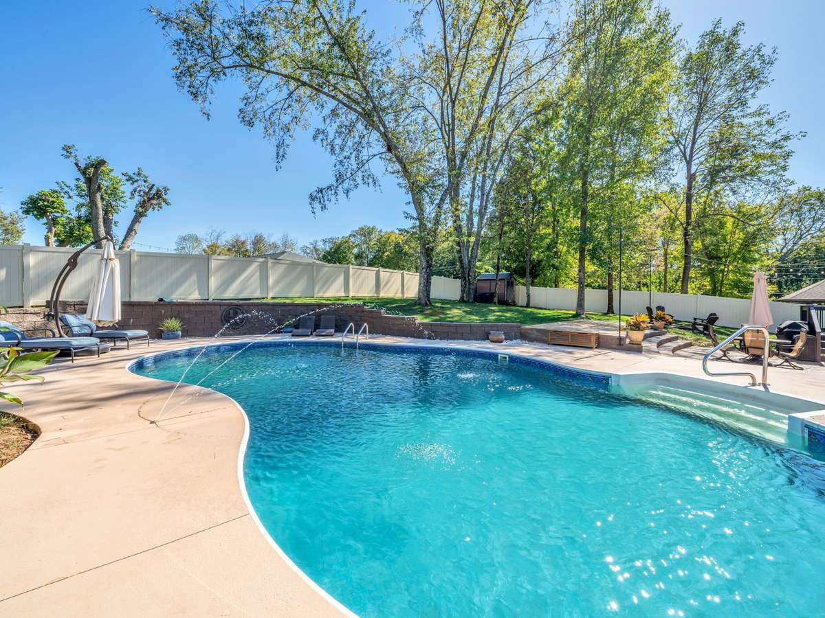 BEAUTIFUL Brick 5 BR 4 Full Baths, with a Bonus Room, in a Great Location! Close to Swan Lake Golf Course and Dunbar Cave State Park with Easy Access to Interstate 24 and Exit 8. NO HOA! Rossview School District! This House is an Entertainer' s Dream with an In- Ground, Heated, Salt Water Pool. Freshly Painted Huge Covered Back Deck, Outdoor Concrete Patio Area and Fire Pit! Privacy Fenced Back Yard with Mature Trees and No Backyard Neighbors! The Extra Large Kitchen Features SS Appliances, Granite Countertops, Loads of Cabinet Space, Tile Backsplash and Tile Flooring with a Double Door Pantry! Just Off the Kitchen is the Lovely Formal Dining Room for All Those Holiday Gatherings. The Great Room Boasts a Beautiful Stone Fireplace with Gas Logs and Hardwood Flooring. There Are 3 Large Bedrooms on the Main Floor, the Primary BR is Huge with a Nice Sitting Area, Tiled 2 Person Walk In Shower, Double Vanities with Granite Countertops and a Large Walk in Closet with Built- In Shelving. The second BR is Large with its Own Full Bath and Double Door Closet. Downstairs, You’ll find 2 More Bedrooms with a Full Shower/ Garden Tub Bathroom, Huge Tiled Bonus Room, a Wine Closet and Unique Laundry Room with Closet Storage and Utility Sink. The 3 Car Garage is Completely Tiled and has a Sauna, a Work- Out Space, Extra Storage and a Very Special Doggie Door That Allows Pets to Come In and Out of the Fenced Backyard from the Garage. There is a Nice Storage Shed for Tools, Pool Equipment, etc. . This Gorgeous Home Truly Does Have A Lot to Offer! Please Come and Take a Look. You Won’t Be Disappointed!