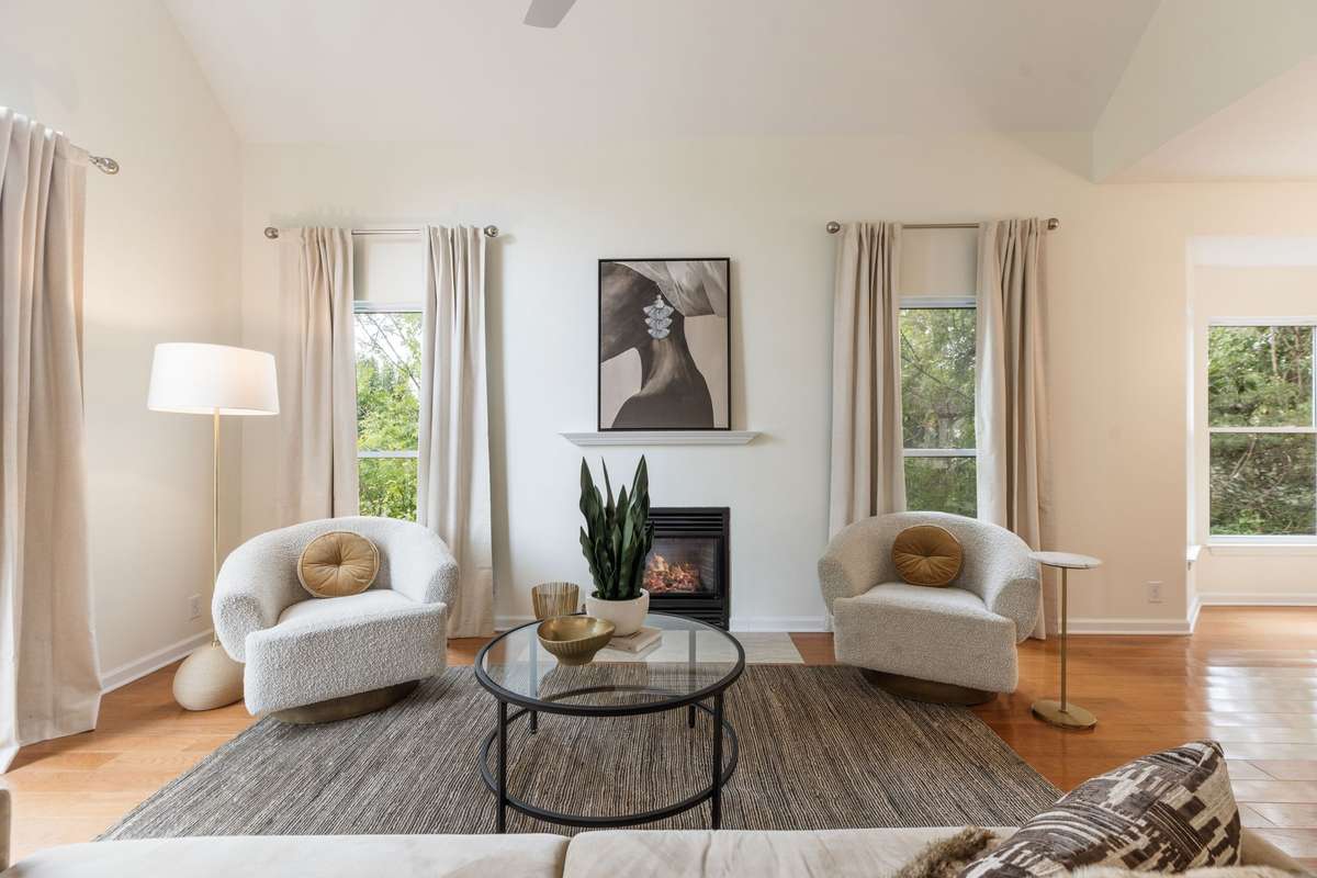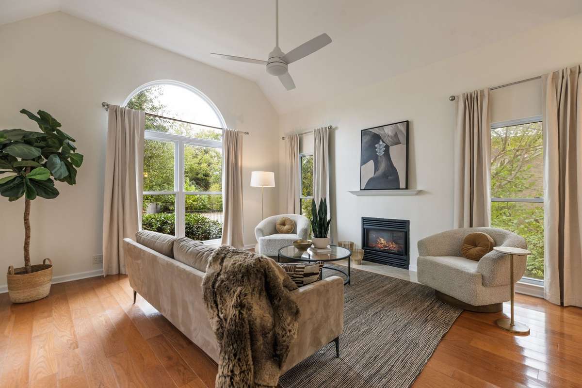 This home welcomes natural light throughout the day through ample oversized windows