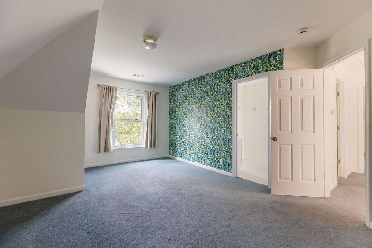 One of the large upstairs bedrooms with attached bathroom