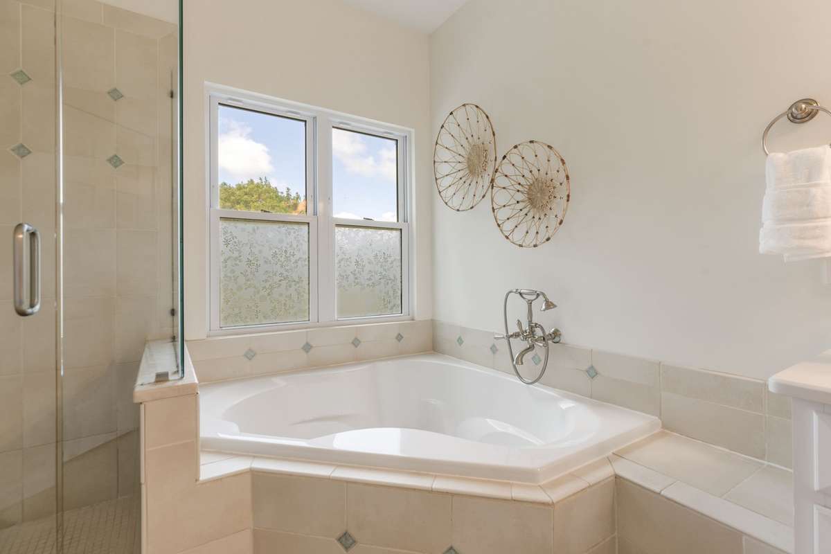 Oversized soaking tub and walk-in shower