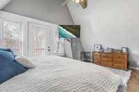 Charming A- Frame on a spacious 1- acre lot with no city taxes! This 3 bed, 3 bath country retreat was renovated less than 5 years ago and features tile flooring in wet areas, granite countertops, and an open- concept living area with beautiful wood accents. The master suite includes an oversized closet and ensuite bath with a tile surround tub/ shower combo, and the home offers a covered porch and deck that overlooks the wooded lot, an attached storage area that is accessible from the outside of the home, and much more. A perfect blend of rustic charm and modern updates!