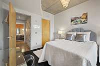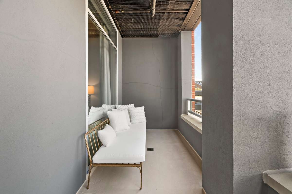 The open- concept design showcases a sleek kitchen with new appliances, polished concrete floors, and an easy flow for entertaining. Step onto your spacious private balcony—perfect for morning coffee or evening cocktails while taking in the vibrant skyline.