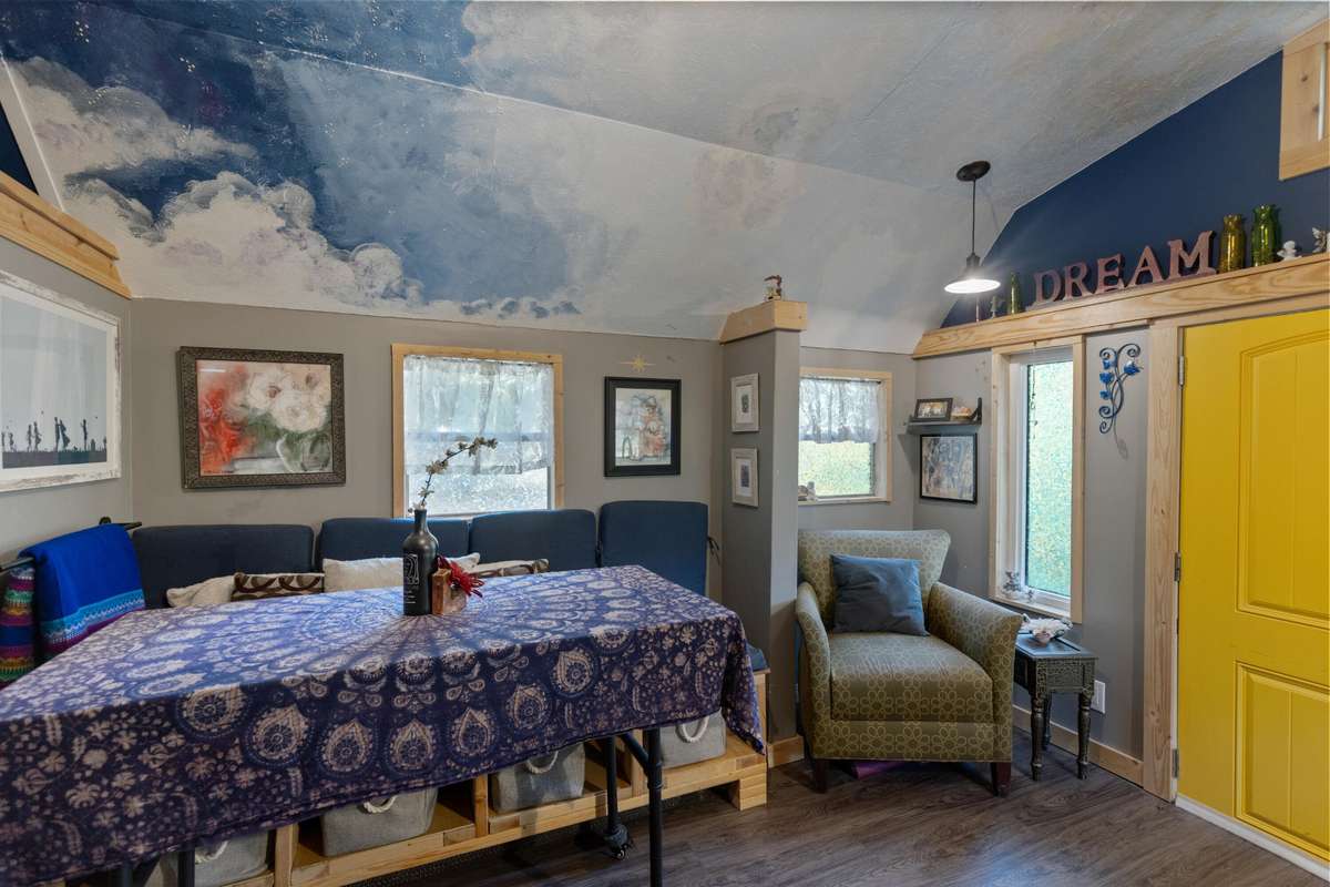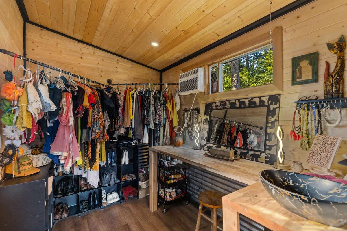 On the lower portion of the property are two thoughtfully designed & furnished tiny homes, measuring 12 x 28 & 12 x 40. Each includes a full bathroom, an efficient kitchen, and creative living spaces.