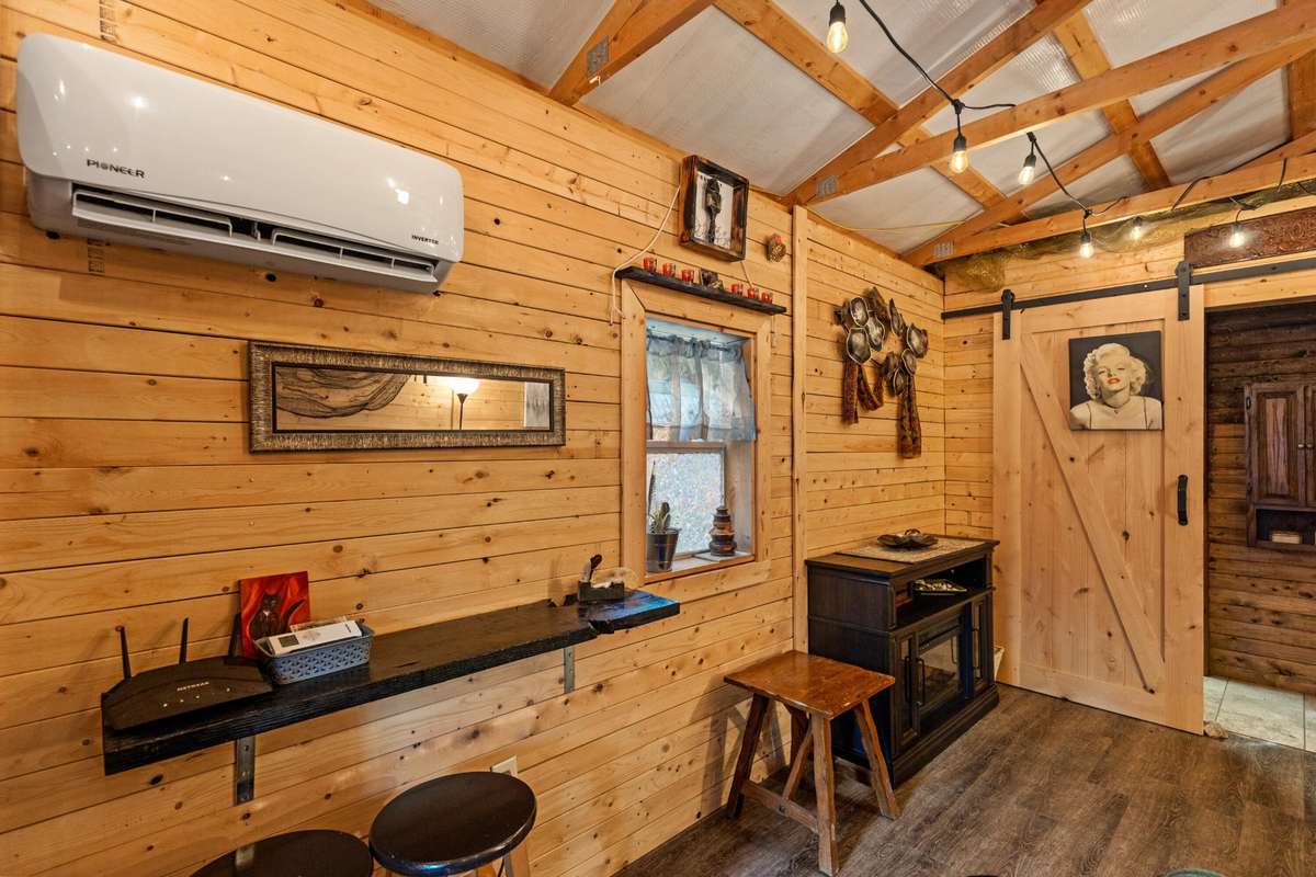 On the lower portion of the property are two thoughtfully designed & furnished tiny homes, measuring 12 x 28 & 12 x 40. Each includes a full bathroom, an efficient kitchen, and creative living spaces.