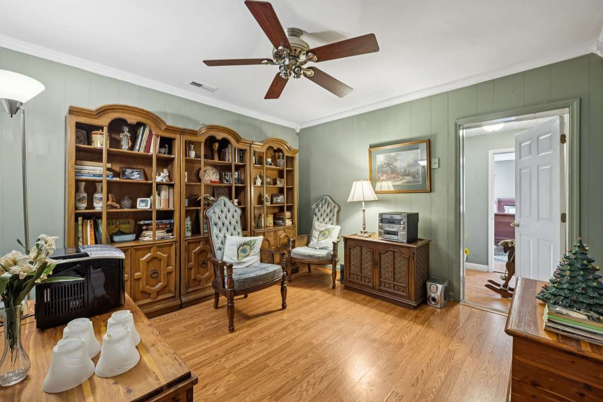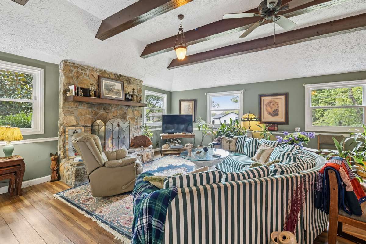 Charming 1932 traditional style home offering 3 bedrooms and 3 full baths, set on a serene 3. 09- acre property, full of character and modern comforts. Beautiful exterior with stone front door entrance and stone chimneys, located on corner lot w/ level to rolling terrain. Inside you’ll find timeless craftsmanship throughout, featuring a welcoming living room with a striking stone fireplace and exposed wood beams, and an elegant office featuring a custom oak mantle and rich carved paneling. The spacious primary suite on the main level includes a full bath, while the sunroom and walk- in utility room add comfort and convenience. Upstairs, two generous bedrooms share an adjoining sitting area, perfect for guests. An antique staircase serves as the home’s centerpiece, blending history with style. Outside, enjoy plenty of space to live, work, and play — including a 25' x 64' metal building with a one- car garage on the lower level, an additional 29' x 18' storage addition, an older barn, storage building, and a small pond. A two- car attached carport completes this versatile property. Located just minutes from Downtown Dickson and an easy drive to Clarksville, this property combines old- world charm with practical rural living — the perfect blend of past and present.