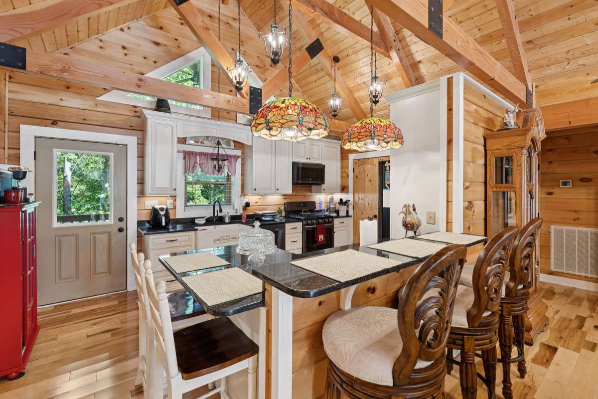 Gatlinburg in Ashland City. Very charming log home barely broken in. Metal roof. Hickory flooring. Great room has a gas fireplace and a vaulted ceiling. Black counters and appliances in the eat- in kitchen with double bar. Double closets in the primary bedroom. Interior built to ADA standards for handicap convenience. Dual heat system and Generac whole house generator. Whole house water filtration. Encapsulated crawl space. Sitting on 5. 17 mostly wooded acres. Long road frontage, 637. 95 feet, for space away from neighbors. Covered wood porch overlooking trees. Two carports for autos and toys. Electrical and septic service for a camper.