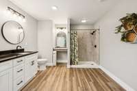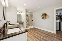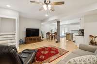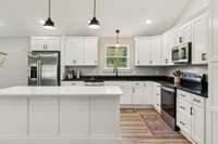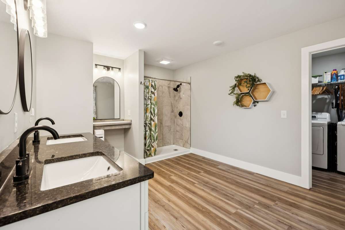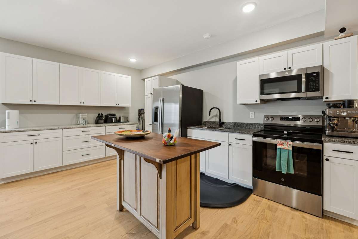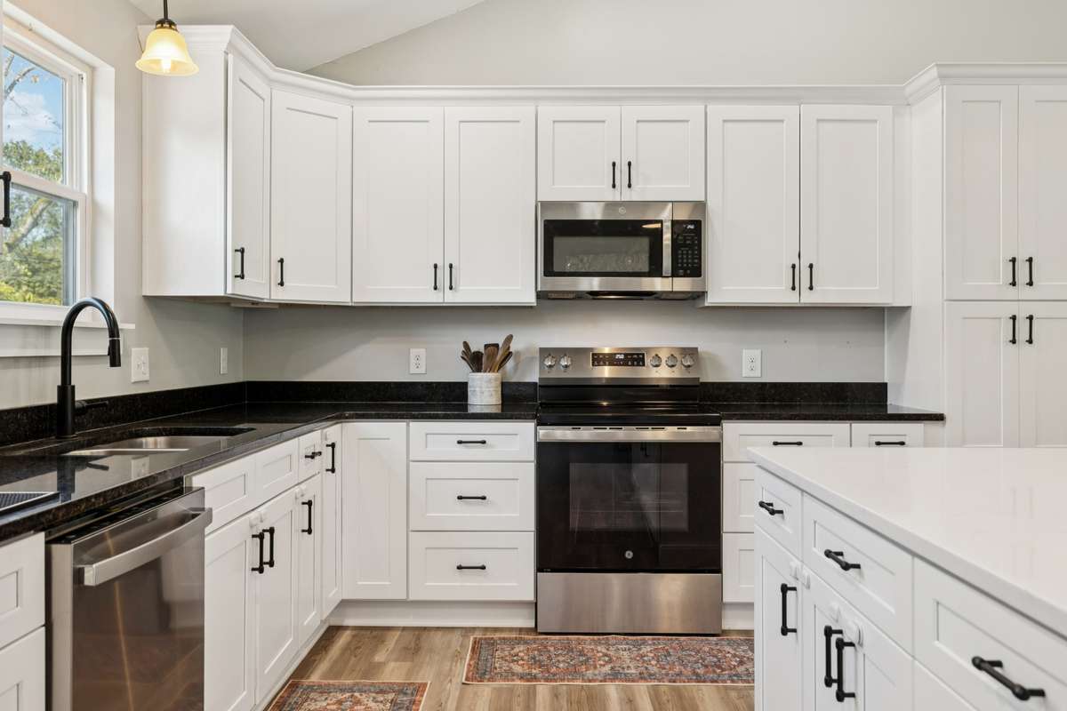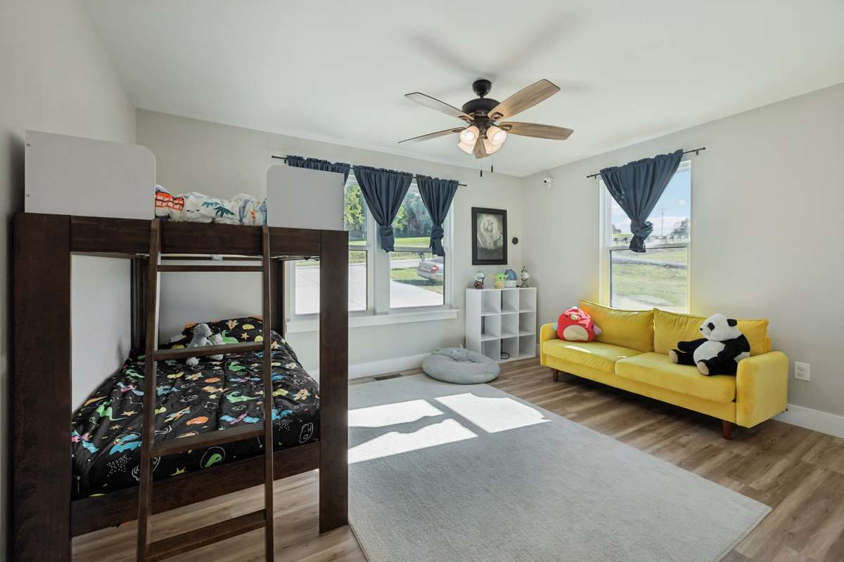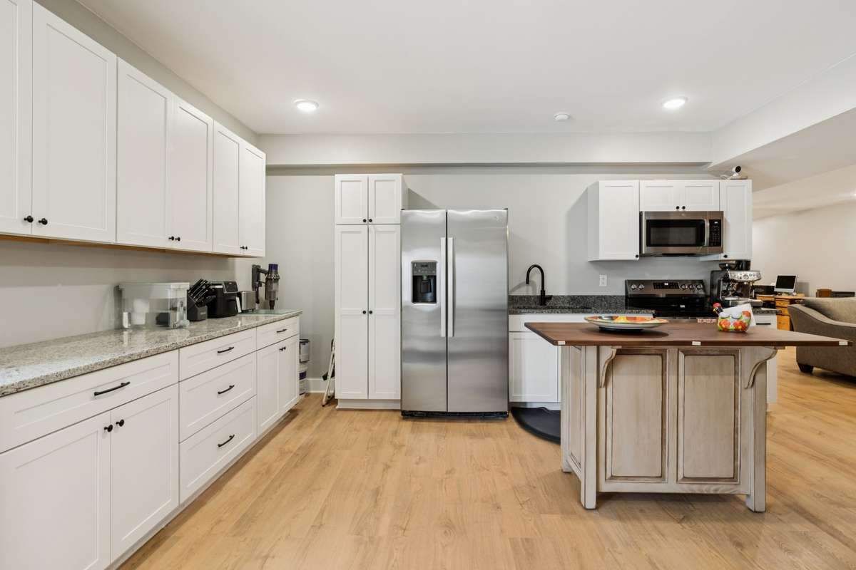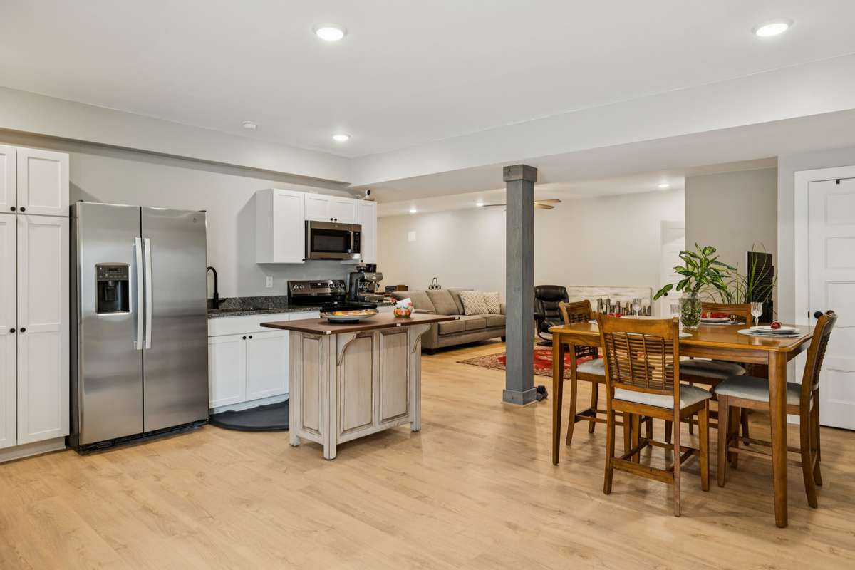 Perfect setup for multi- generational living with one level on the main and a fully finished basement! This 4 BR / 3 BA home offers a spacious main level with an open- concept floor plan, vaulted ceilings, and 3 bedrooms/ 2 baths on main floor. The kitchen boasts white cabinetry, built- in pantry cabinets, granite countertops, stainless appliances, and a large island. The finished basement with upgraded insulated ceilings is currently used as a mother- in- law suite, complete with a full kitchen, living room, utility area, and a spacious bedroom with a full bath. Covered front porch with fenced front yard, spacious back deck, gutter guards. Current owner invested $ 28, 000 in additional builder upgrades beyond the original MLS sold price. Conveniently located within walking distance to the lake and less than 1 mile to K- 8 school.( island in basement will not remain) . Basement washer & dryer will remain. Video & audio recording will be present in home during all showings.