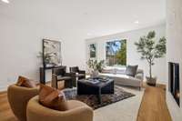 Entertaining is a breeze in the chic living areas boasting high ceilings, a cozy fireplace & illuminated by custom chandeliers and recessed lighting. The home' s well- appointed kitchen seamlessly extends to the spacious den & private patio, perfect for alfresco dining as well as watching your beloved pet have access to the secure fenced in back yard.