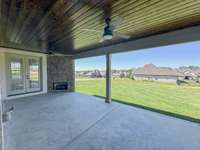 Builder model home on 1 acre lot! Step inside to an open- concept living area anchored by a beautiful stone gas fireplace, seamlessly flowing into the kitchen featuring quartz countertops, double ovens, a gas cooktop and a spacious walk- in pantry. Every bathroom includes quartz countertops, Delta plumbing fixtures, and elegant tile flooring and shower walls for a luxury experience. Designed for everyday ease, the Oakwood Plan includes a mudroom at the garage entry, and generous storage throughout the home with extra closets and a walk- in attic. Outdoor living is elevated with a covered back porch featuring stained wood ceilings, a gas fireplace, and large backyard—perfect for relaxing or entertaining.