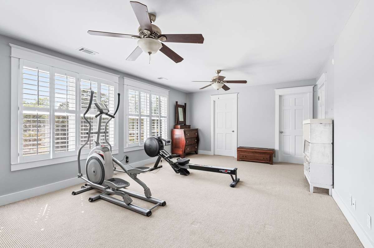 This spacious 2nd floor bedroom is currently being used as an exercise room. It has a walk in closet and a full bath attached