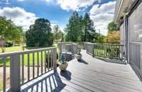deck area off the screened porch allows for outdoor cooking, catching some sun and a beautiful view of the private back yard with rolling hills in background