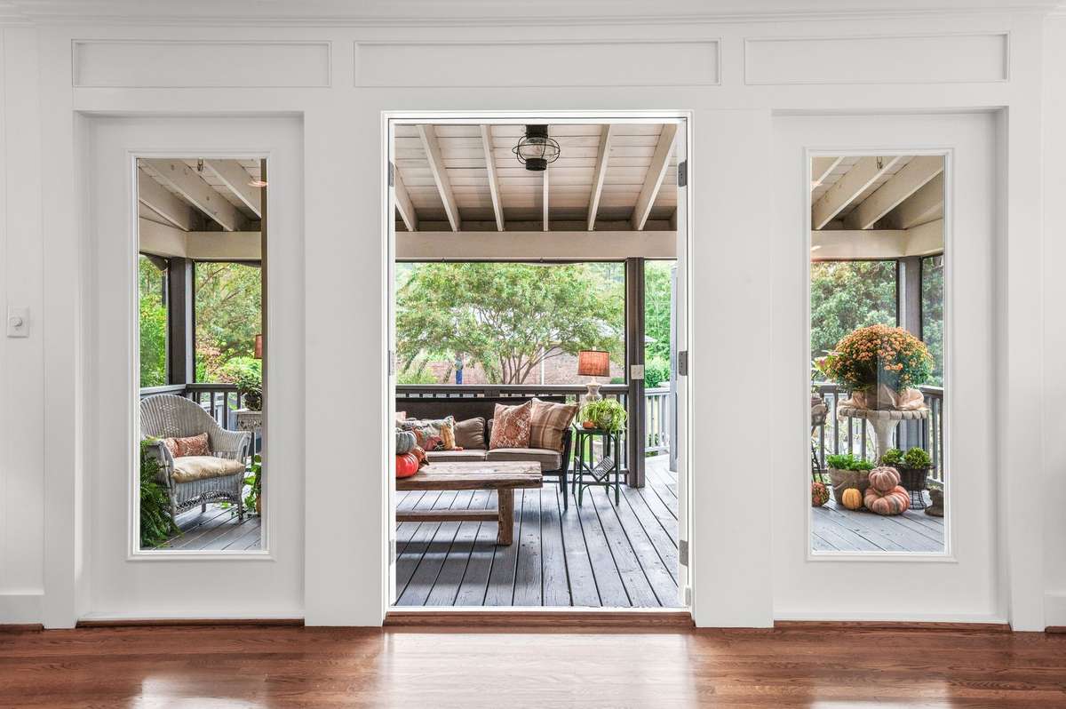 Open both doors to the screened porch for easy flow when entertaining and enjoy the fireplace from the porch