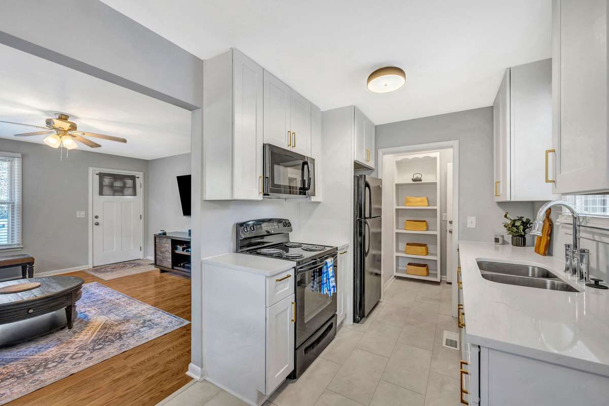 New Kitchen Cabinets with soft close drawers and doors.  New Upgraded Quartz Countertops in Kitchen.  Stove, Microwave, Dishwasher and Refrigerator all remain.  Pantry area in Back of Kitchen