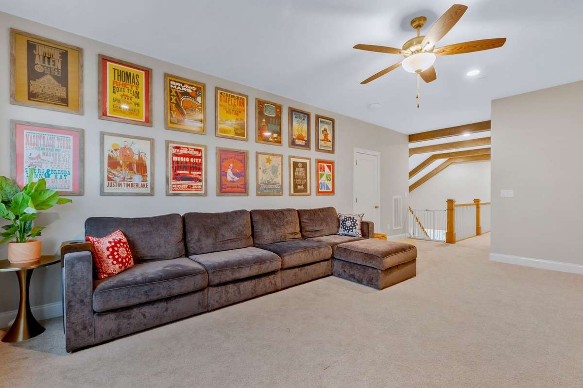 Inspired by the historic charm of Annecy, France, 1109 Angela Ann Court in Nolensville’s coveted Annecy neighborhood is a 5- bedroom, 4- bathroom masterpiece designed for modern family living. The open- concept main level showcases a chef’s kitchen, a culinary dream with a walk- in pantry, seamlessly flowing into the dining area and a soaring two- story great room—perfect for family gatherings and entertaining. The luxurious primary bedroom, located on the main level, features two custom closets and a spa- like en- suite for ultimate comfort. Upstairs, two additional bedrooms and a custom- built bunk room, designed for fun and functionality, accompany a spacious media/ bonus room ideal for movie nights. Outside, nearly half an acre of fenced green space offers a wraparound front porch, a covered back porch with an outdoor fireplace, and a grilling area, perfect for kids and pets. With a three- car garage and proximity to top- rated Williamson County Schools, shopping, and dining, this home blends comfort, style, and functionality into a true gem.