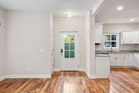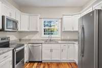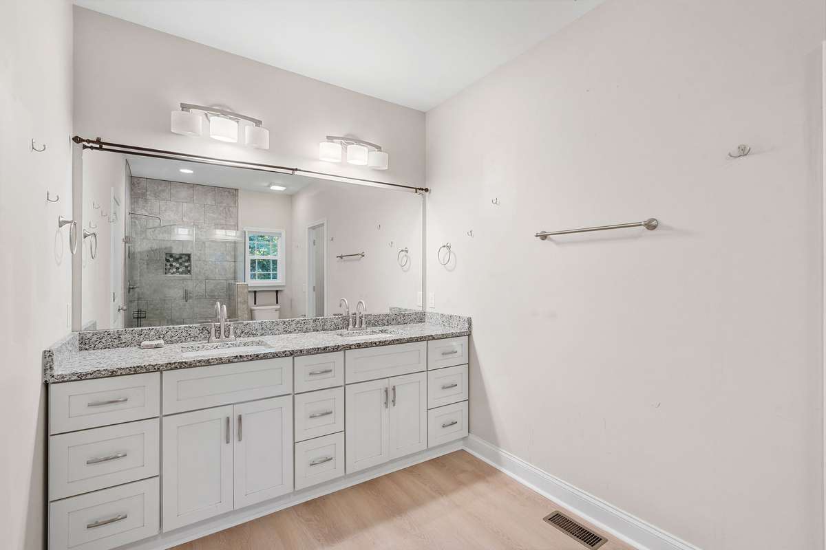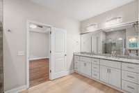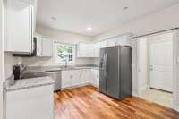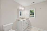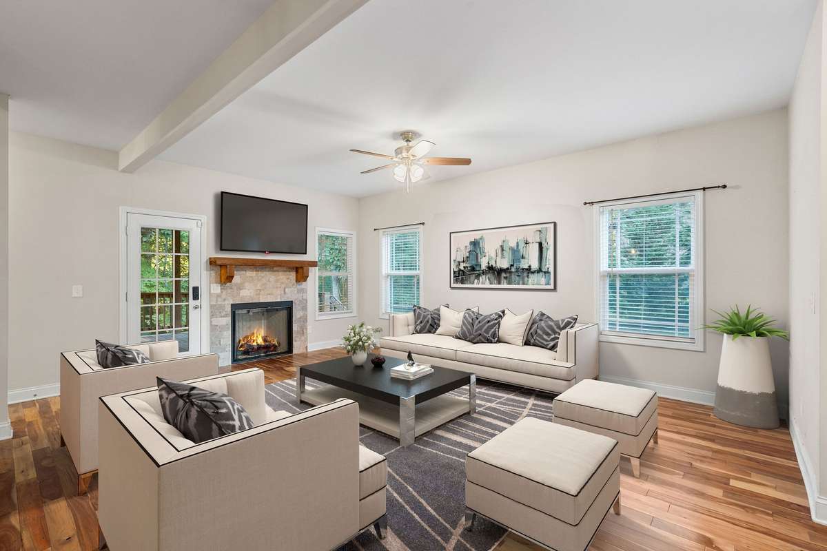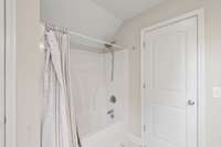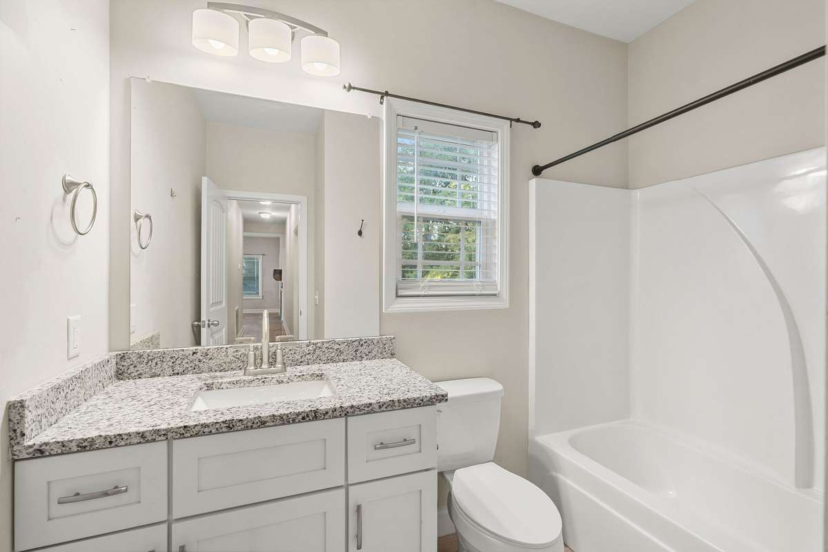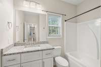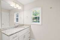The Primary Suite is a spacious private retreat, offering a full en- suite bath with a separate tub and shower. A standout feature is its direct deck access, allowing you to step right outside onto the covered back porch overlooking serene woods and a creek—it' s the perfect spot for unwinding.
