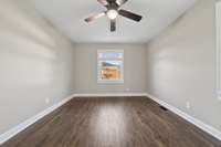 Large bedrooms....ceiling fans...blinds...hardwood flooring....neutral colors...