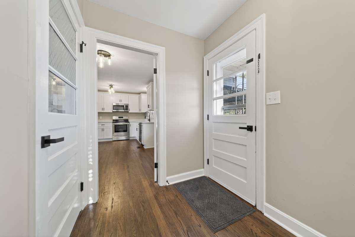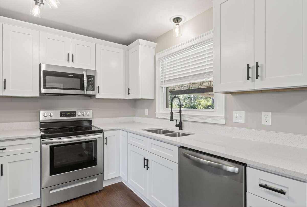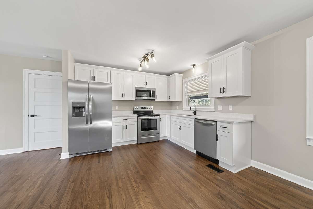 Kitchen features...white shaker style cabinets with soft close hinges, quartz countertops, stainless steel appliances, new lighting and those hardwoods!!!