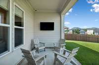 Thoughtful upgrades include EV wiring, painted three- car garage with carriage doors, hardwood staircase, and a covered back patio overlooking a fenced, sodded yard. Move- in ready with stylish window treatments already in place.