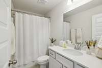 The main- floor primary suite is a true retreat with a luxurious bath featuring a walk- in shower, soaking tub, and dual vanities. A second main- floor bedroom and full bath offer flexibility for guests. Upstairs, you' ll find two additional bedrooms, two full baths, a spacious bonus room, and a partially finished 12' x 16' space ideal for a future fifth bedroom or storage.