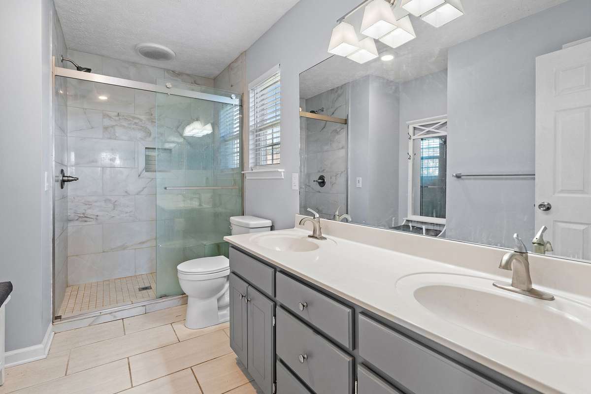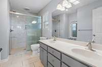 Retreat to the primary suite, completely renovated with ceramic tile floors, a stunning walk- in tile shower, and a spacious, expanded closet. The secondary bath has also been refreshed with new flooring, paint, and fixtures.