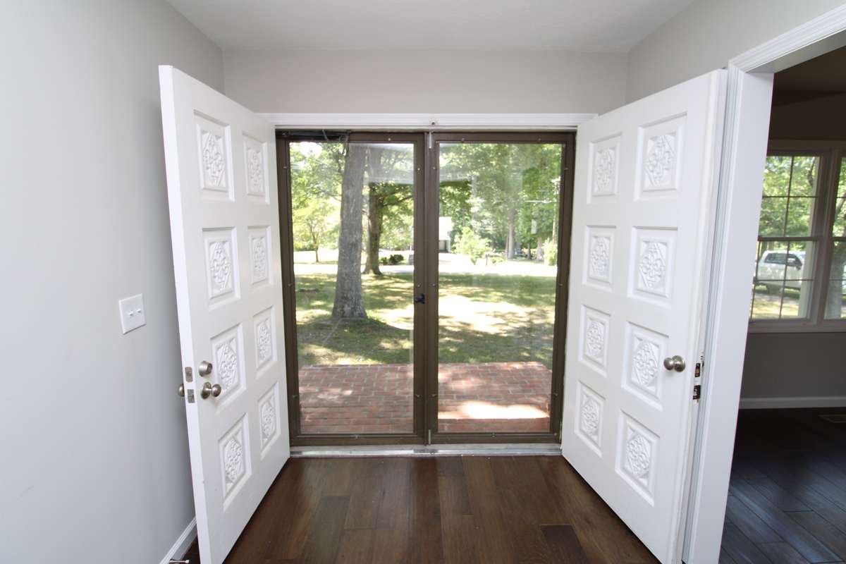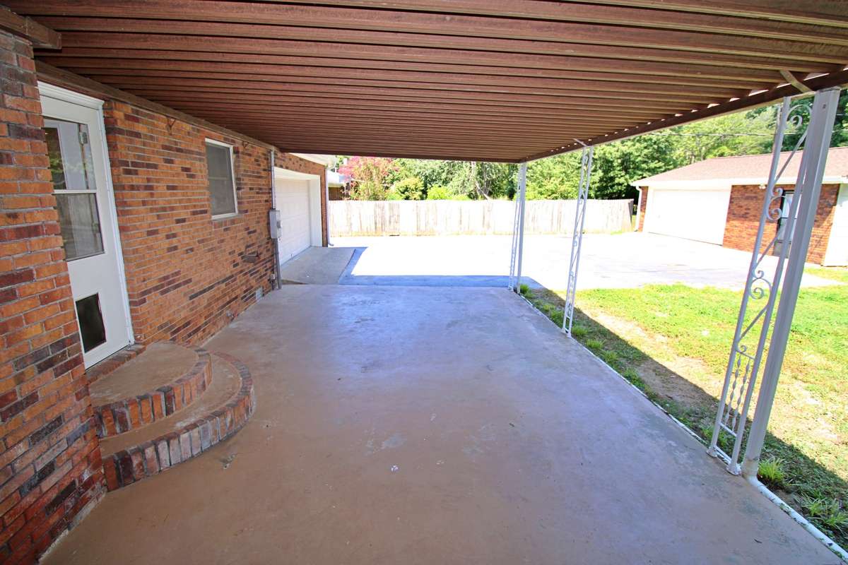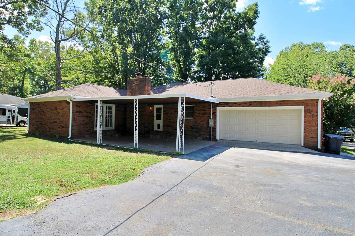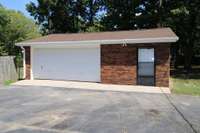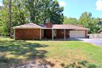 You are welcome at the front door with a large porch area and antique French doors. The kitchen features brand new Frigidaire appliances, ample cabinetry, grantite countertops and a large kitchen island, making it ideal for both daily living and entertaining with a separate dining area. The primary suite includes a bathroom, his and her closets and access through French doors to the 16x28 outdoor covered patio. While 2 additional bedrooms offer flexibility for family, guests, playroom, exercise room, or a home office. Brand new hardwood flooring throughout with new carpet covering all bedrooms. The exterior is just as inviting, with a fenced in, private backyard retreat perfect for gatherings, gardening, or unwinding after a long day. Mature landscaping enhances the peaceful setting, creating a true sense of home. This home features a 20x25 attached one car garage with an attached 9x6 full bathroom and utility hookups. In the rear of the home, you will find a 24x30 detached garage. Located in a desirable neighborhood, this property offers easy access to schools, shopping, dining, and major roadways, all while maintaining the quiet charm of Hillwood Circle.