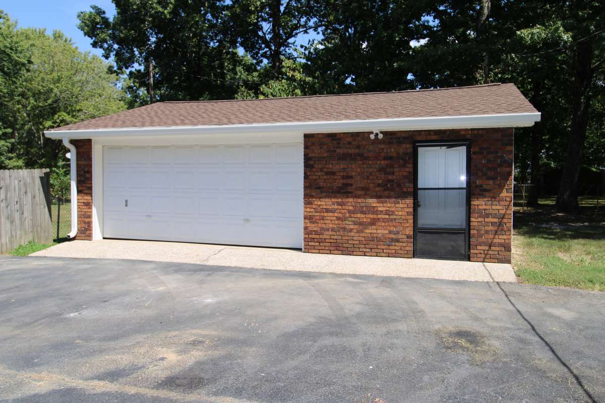 You are welcome at the front door with a large porch area and antique French doors. The kitchen features brand new Frigidaire appliances, ample cabinetry, grantite countertops and a large kitchen island, making it ideal for both daily living and entertaining with a separate dining area. The primary suite includes a bathroom, his and her closets and access through French doors to the 16x28 outdoor covered patio. While 2 additional bedrooms offer flexibility for family, guests, playroom, exercise room, or a home office. Brand new hardwood flooring throughout with new carpet covering all bedrooms. The exterior is just as inviting, with a fenced in, private backyard retreat perfect for gatherings, gardening, or unwinding after a long day. Mature landscaping enhances the peaceful setting, creating a true sense of home. This home features a 20x25 attached one car garage with an attached 9x6 full bathroom and utility hookups. In the rear of the home, you will find a 24x30 detached garage. Located in a desirable neighborhood, this property offers easy access to schools, shopping, dining, and major roadways, all while maintaining the quiet charm of Hillwood Circle.