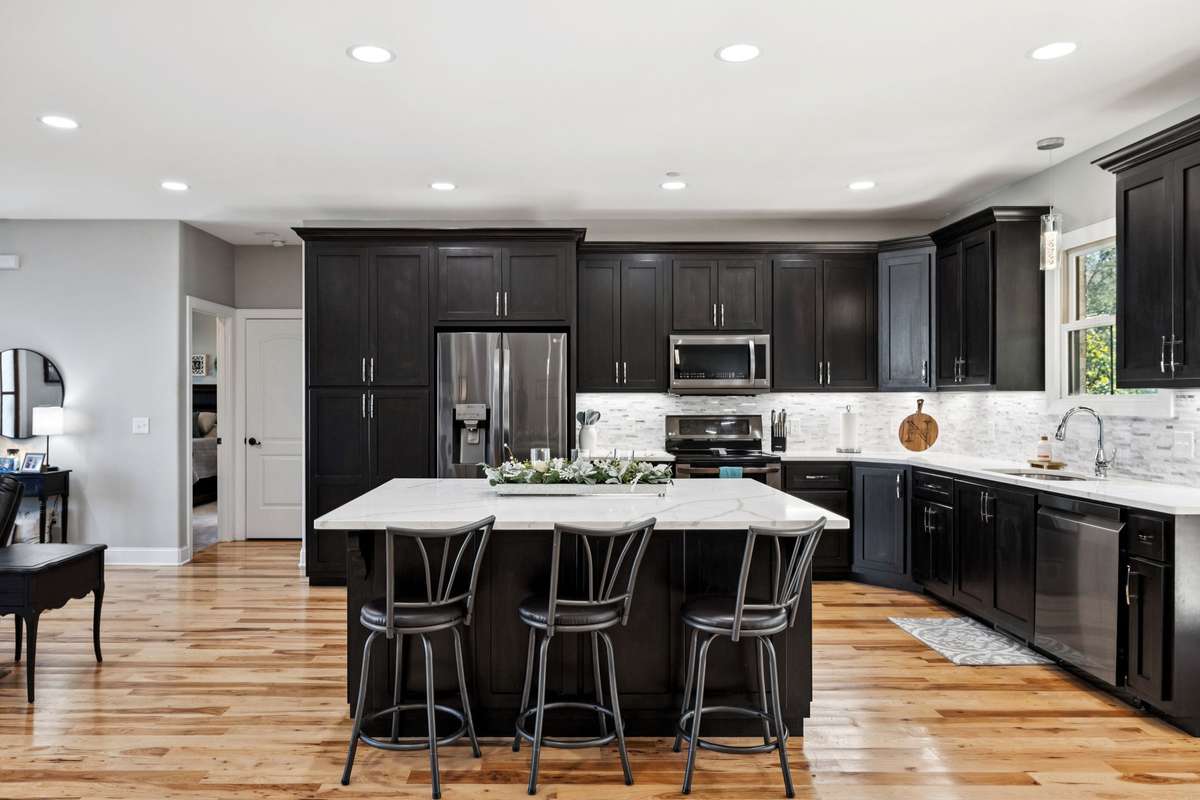 One of the newest homes in Town Pride Subdivision on one of the best lots that is bordered by the creek~ one level of PURE HAPPINESS~ this custom, one owner home feels like new the minute you walk in~ beautiful brick on the exterior just gives a glimpse of the attractive interior that awaits! Real Hickory hardwood floors throughout~ an open living/ kitchen/ dining concept with a large island topped with gorgeous quartz for plenty of cabinet and counter space~ all stainless appliances and all remain~ make the fireplace the center attraction just in time for the Christmas decorating to begin ( or at least that is what IG is showing)~ recessed lighting throughout~ large master suite with a bath to die for and yes you can faint right on the heated tiled floors and never worry about getting chilled~ tankless water heater and natural gas which is a rarity these days even in new construction~ nice laundry room~ walk- in attic great for storage~ covered deck with a tongue and groove ceiling in rear where you can see the creek~ pool table remains for all you pool sharks