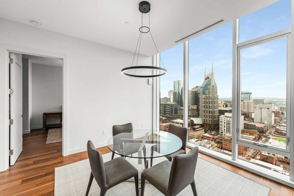 Experience elevated urban living in this stunning one- bedroom residence at the Four Seasons Private Residences Nashville. Enjoy spectacular north- facing views of the downtown skyline, river, and Titans Stadium from this premier address in the heart of Music City. This one bedroom one and half bathroom unit is steps from Bridgestone Arena, the Ryman, Schermerhorn, Nashville’s top dining and entertainment, and so much more. Interior features include custom closets, motorized window treatments with blackout shades in the bedroom, and elegant designer finishes. Residents enjoy exclusive Four Seasons amenities and services—private Residence Lounge, Sky Garden, Fitness Center, Media Room, Resort Pool, and world- class Spa. Valet parking space included for effortless city living.