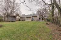 The spacious, fully fenced backyard offers privacy, a wooden deck for outdoor entertaining, and a detached storage shed.