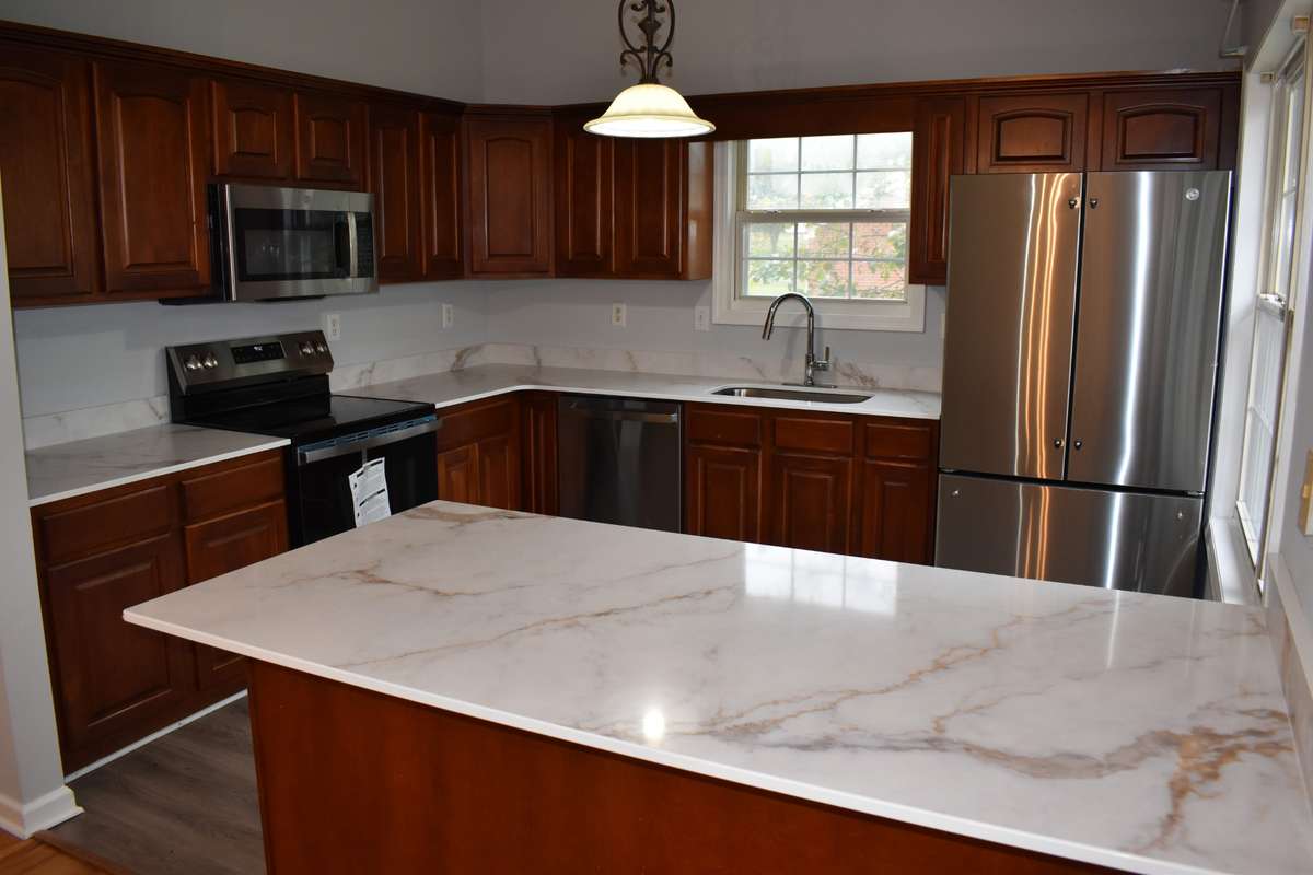 Room to Eat in Kitchen with some Bar Chairs.  New Granite Countertops.