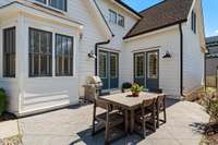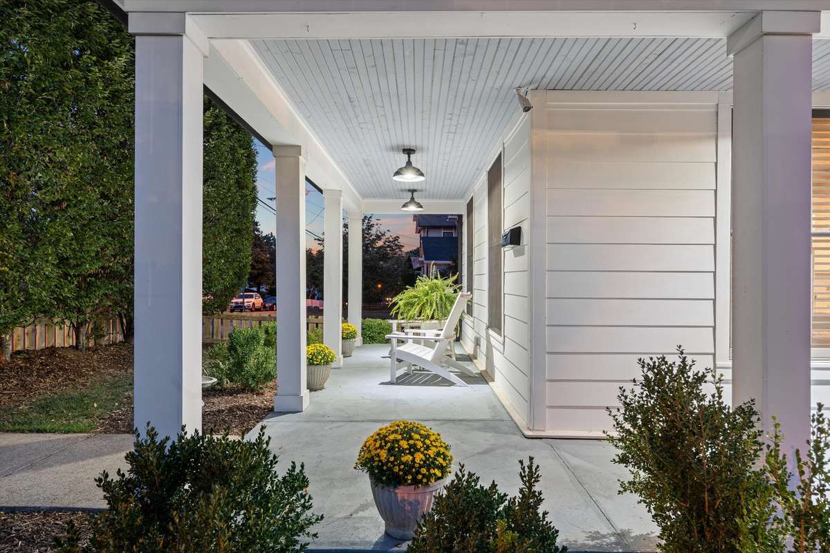 Outdoor living shines with a rocking- chair front porch, covered entry, side- yard grill and dining terrace, and a rear patio perfect for morning coffee or evening unwind. The 50’ × 156’ lot lives large thanks to a handsome side alley that functions like a corner lot—granting both privacy and access to the attached garage.