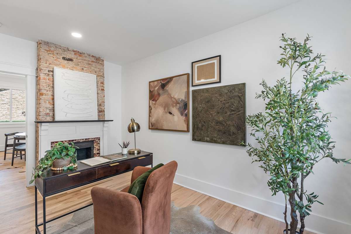 Stunning renovation of this historic one level home with FOUR Victorian era style fireplaces, soaring ceilings, and spectacular floor to ceiling exposed brickwork, this is truly a one of a kind home. With an open floor plan and designer high end finishes throughout, every inch of this house has been thoughtfully designed and planned out. Spacious kitchen with complementing quartz countertops, a designer Spanish tile accent wall, a dry bar, separate dining area, beautiful red oak hardwoods throughout, this house has it all. Located on a generous sized corner lot in the Highland Heights area of East Nashville and in the DADU overlay, perfect for anyone wanting to build a backyard apartment for guests, in- laws, or extra income. Walking distance to all Cleveland Park has to offer, minutes walk to East Nashville Beer Works, Momento Coffee, Lykke Haus Vintage Store, Crema TakeAway, and more, and only a 10 minute drive to downtown. Both bathrooms feature deep soaking tubs, and meticulous finishes. The guest bathroom has floor to ceiling accent tiled wall, while the primary bathroom has thoughtfully curated designer tile and finishes. The spacious fully fenced in backyard has an adorable pea gravel patio area, and the front yard with a covered front porch is perfect for sipping morning coffees or an evening glass of wine with friends, chatting with neighbors as they pass by. Experience a genuine sense of community—sidewalks lined with joggers and dog walkers, and a welcoming mix of young families and professionals who make this area feel alive and connected.