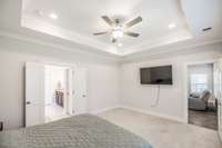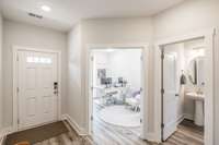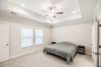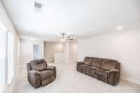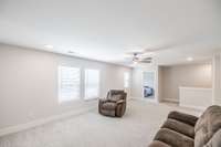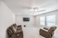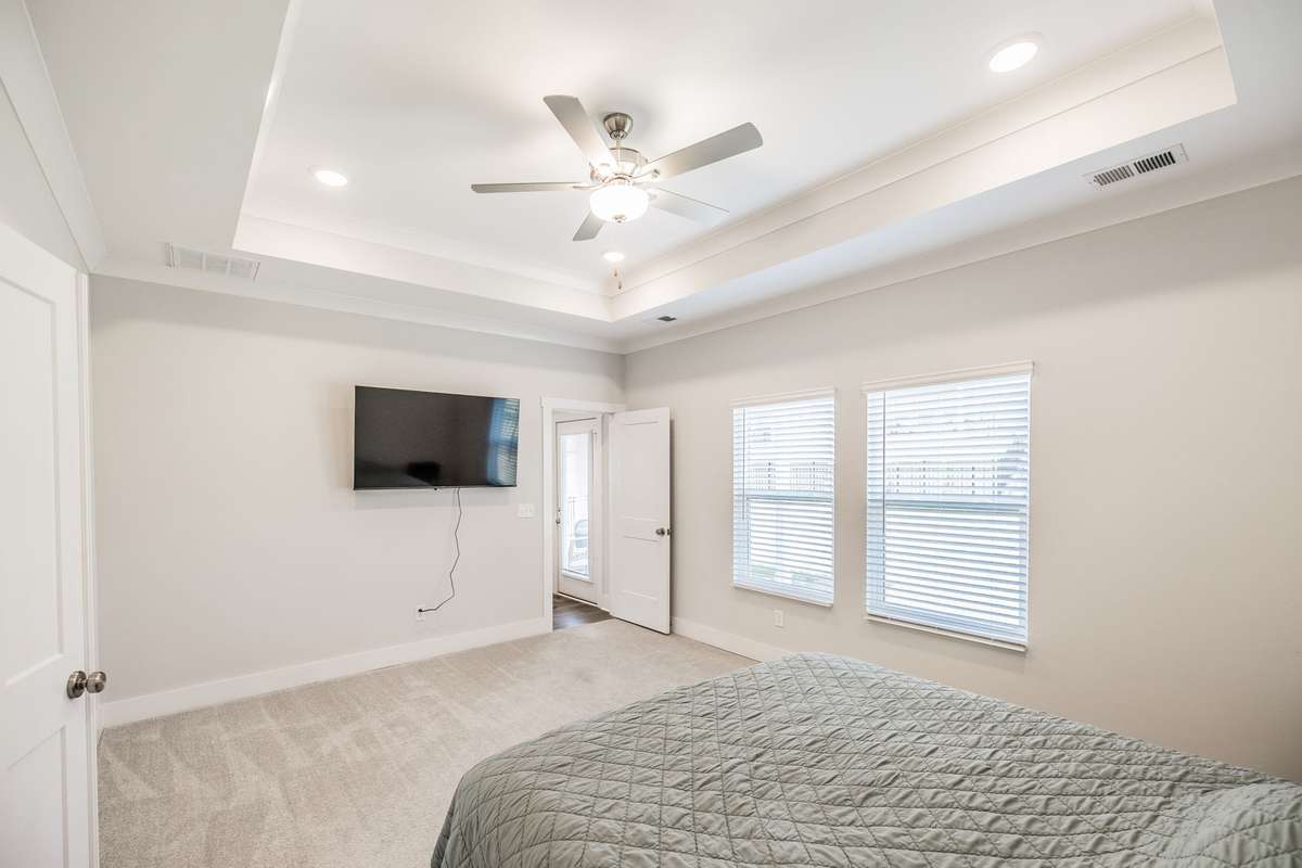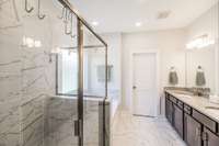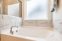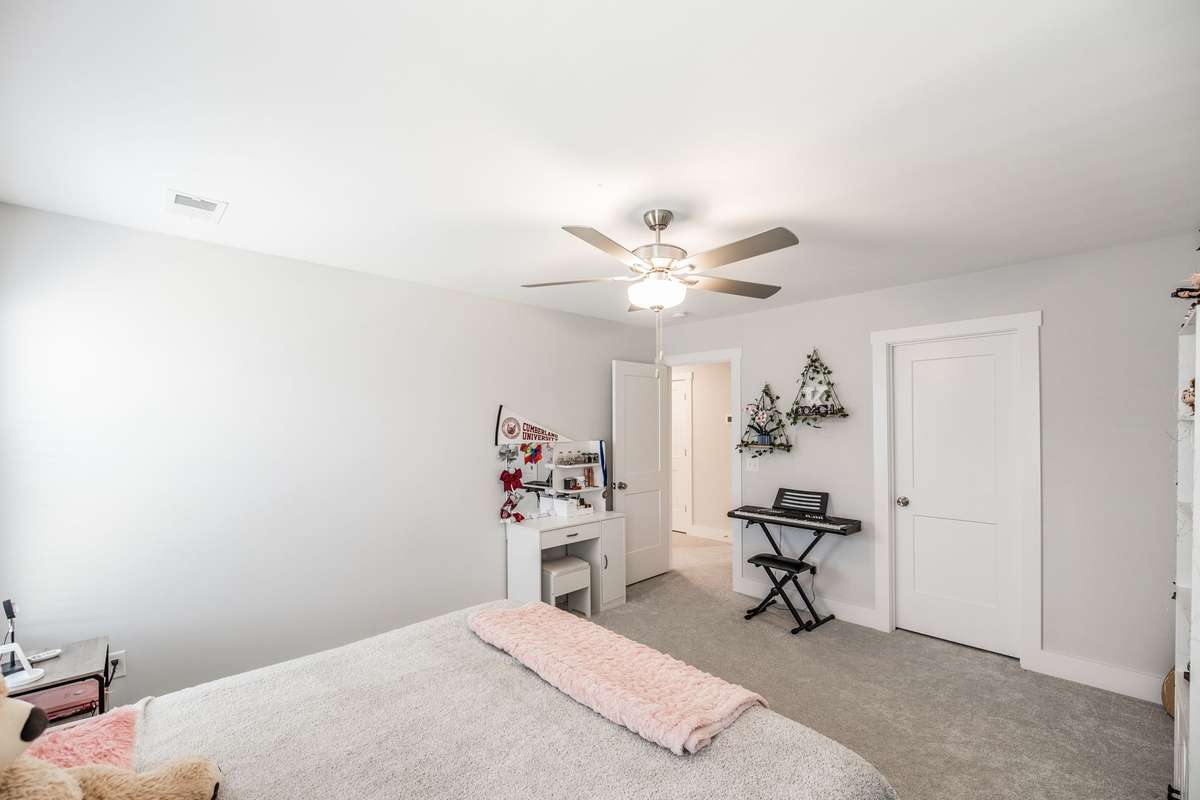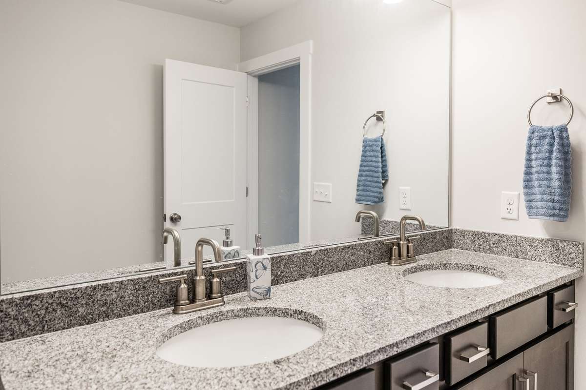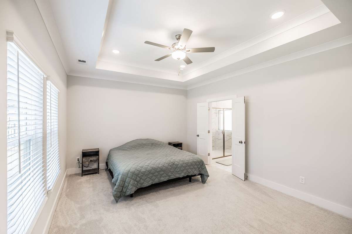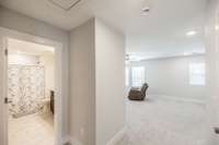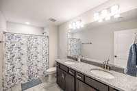 The primary suite offers a peaceful retreat with a soaking tub, walk- in shower, and dual vanities. Upstairs, each bedroom includes a walk- in closet, and an oversized bonus room provides endless flexibility for play, media, or guest space.