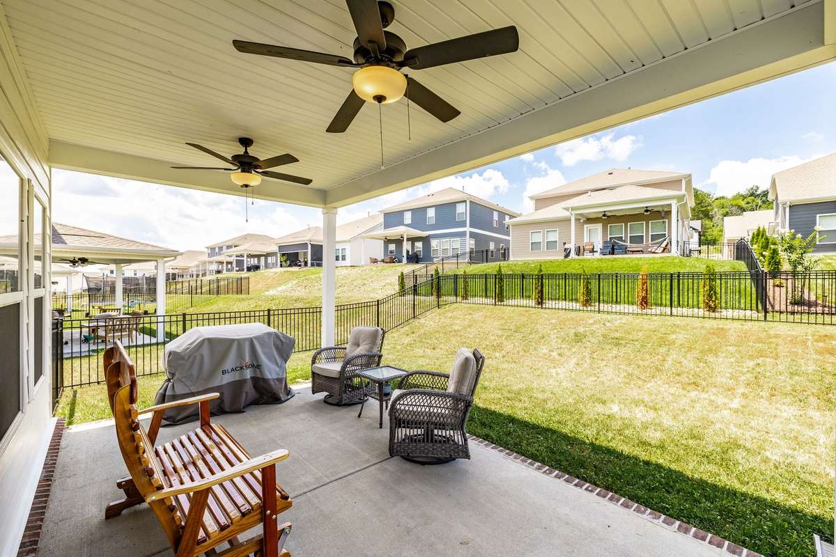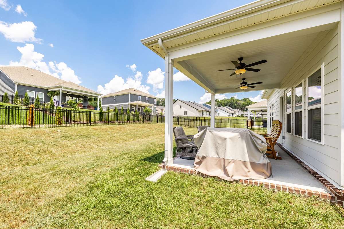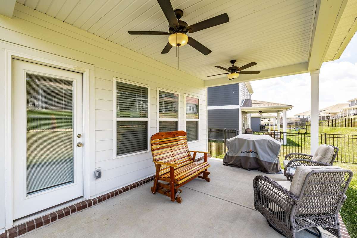 Enjoy the outdoors from your covered back patio overlooking the fully fenced backyard, or take in the private wooded view across the street—no front neighbors!