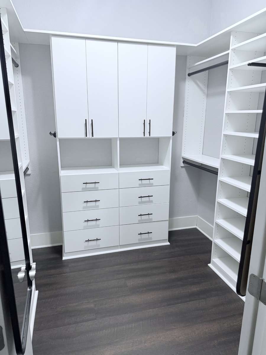 The open- concept layout features high ceilings and a seamless flow from the kitchen to the living and dining areas — perfect for relaxing or entertaining. The chef- inspired kitchen boasts stainless steel appliances, a wine fridge, and contemporary finishes that complement the home’s modern style. The primary suite offers a luxurious retreat with dual vanities, a custom shower with body sprays, and spacious walk- in closets for both him and her.