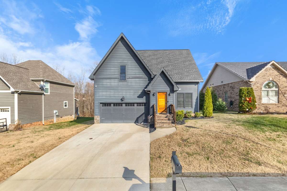Discover your dream home! Nestled on a peaceful cul- de- sac in the coveted Somerset neighborhood within the sought after Rossview School District. This stunning residence combines modern design with timeless elegance, featuring chic black and gold accents throughout. Step into the inviting entry foyer, which flows into a spacious living room adorned with a vaulted ceiling and a striking floor- to- ceiling shiplapped gas fireplace. The main level offers ultimate convenience with a luxurious primary suite and a handy laundry closet. The modern kitchen is a chef’s delight, boasting quartz countertops, upgraded appliances, and bar seating. The primary suite is a sanctuary, featuring a stylish accent wall, a double- sink vanity with an LED bathroom mirror, and tiled stand- up shower, with a massive walk- in closet. Upstairs, you’ll find two additional bedrooms, a full bathroom, and a versatile bonus room that can easily serve as a fourth bedroom or a recreational space. Relax on the covered deck overlooking the backyard. The attached garage is currently set up as a home gym which adds an extra layer of functionality to this incredible property. Schedule your private tour today! Don’t miss the opportunity to call this modern masterpiece your new home!