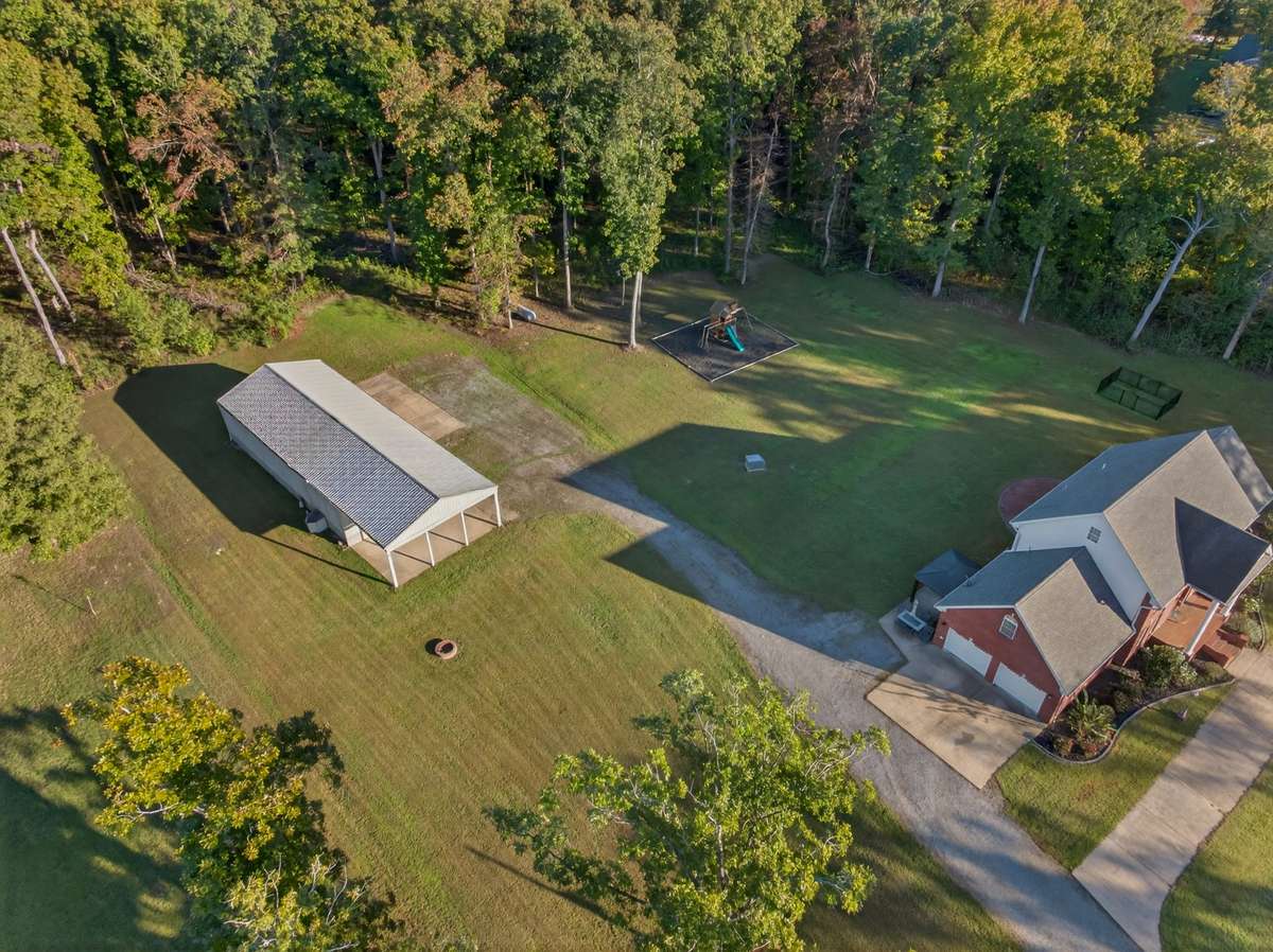 Additional highlights include in- floor drains throughout the shop, water and electric hookups for RV use, and a 50- amp outlet in the garage. The propane tank is owned and transfers with the property. Playset to convey. Convenient to the Tennessee River, Paris Landing State Park, and Paris, TN, for major shopping and medical.