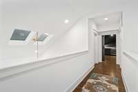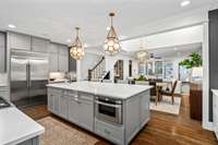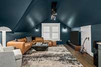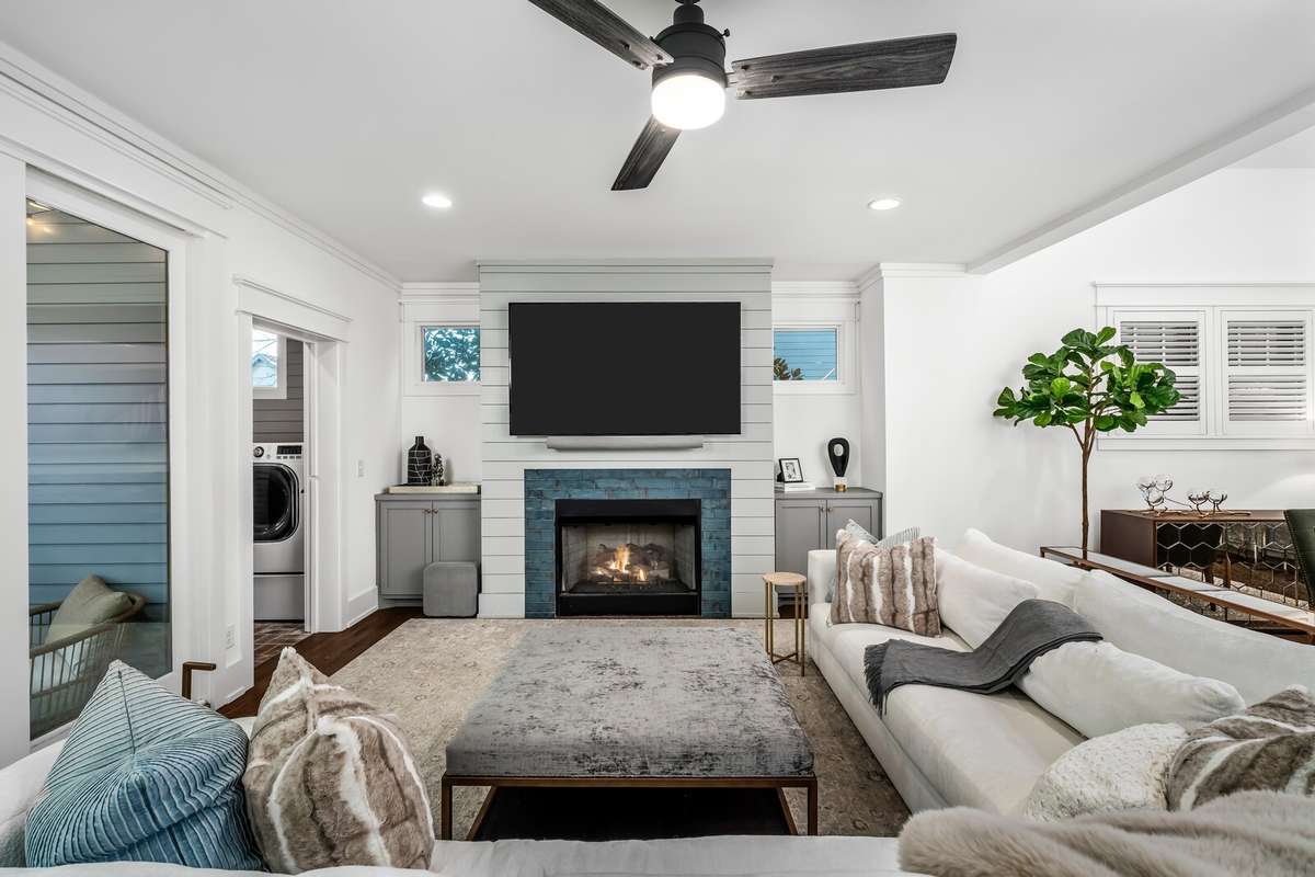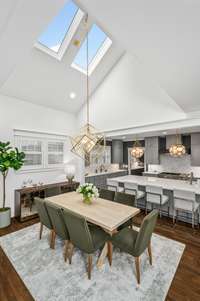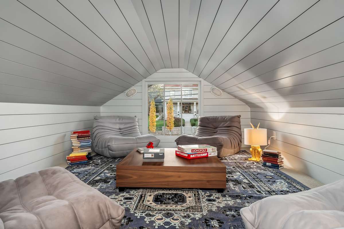 Inside, a natural flow connects beautifully proportioned living spaces, unified by rich hardwoods, custom millwork, and dual fireplaces that add warmth and balance. The chef’s kitchen anchors the main level with its Bertazzoni gas range, quartz countertops, and discreet butler’s pantry — a seamless blend of performance and style. Just beyond, the main- level primary suite provides a tranquil retreat with tailored finishes and generous scale, while the upper level introduces a flexible lounge ideal for media, play, or study, alongside three inviting bedrooms.