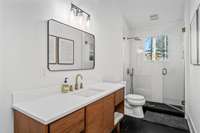 Outdoor living extends the experience with a screened porch and deck that open into the backyard’s private canopy — perfect for casual entertaining or quiet weekends at home. Complementing the main residence, a detached two- car garage with alley access includes a 580 sq. ft. guest apartment complete with kitchen, living area, and full bath — a refined one- bedroom suite ideal for guests, in- laws, or short- term rental potential. A separate bungalow- style flex space, not included in the total square footage, adds even more versatility as a cozy reading nook, creative studio, or kids’ hangout spot.