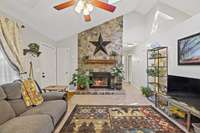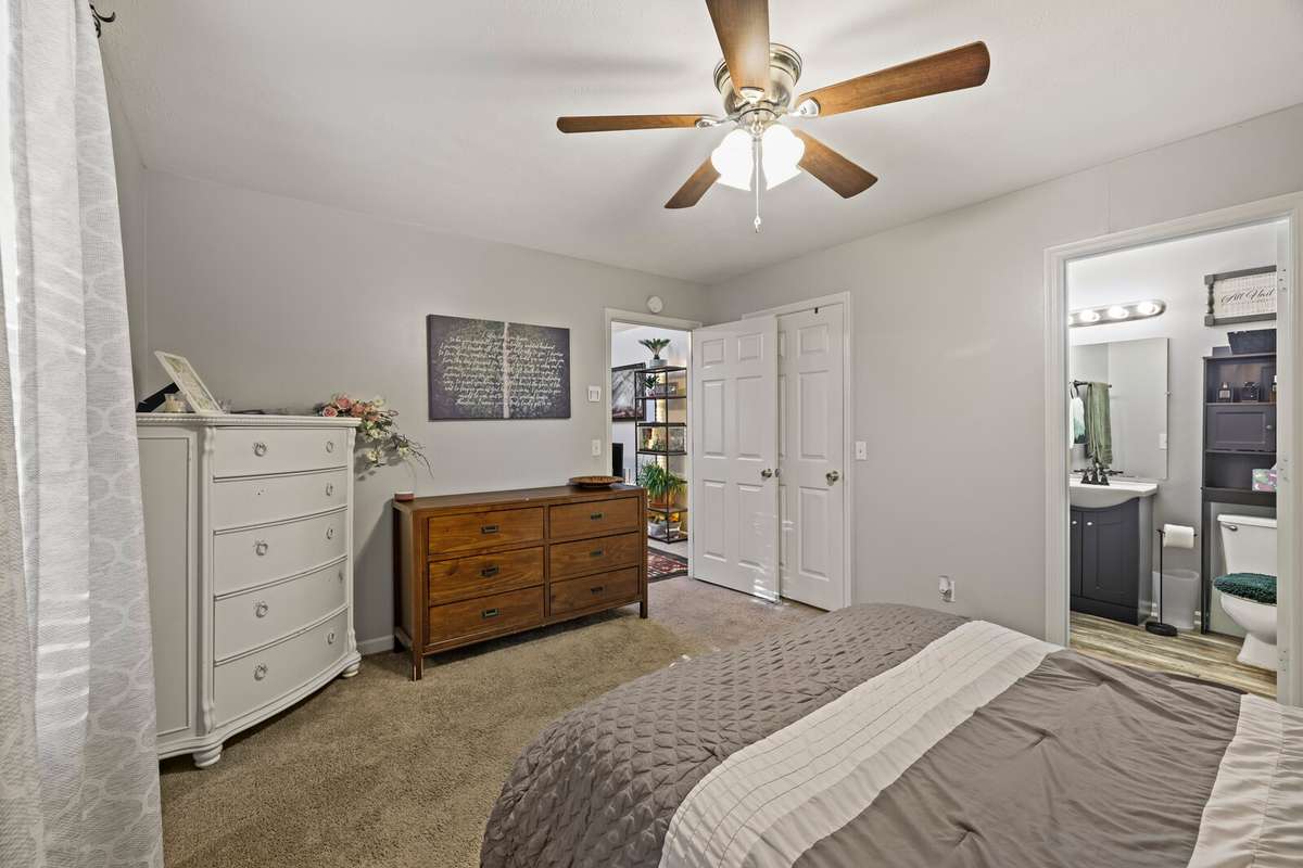 Filled with natural light and cozy charm, this 3- bedroom, 2- bath home offers open living space. The vaulted ceilings with skylights create an airy, open feel, while the stone fireplace adds warmth and character to the main living area. The kitchen features an attached dining space. This home offers a split floor plan providing privacy with the primary suite located separately from the guest rooms. The spacious primary bedroom includes a large walk- in closet and an en- suite bathroom, while the secondary bedroom also features its own walk- in closet. Recent updates include a new HVAC system ( Sept. 2025) and a new water heater ( April 2025) . Outside, enjoy the fenced backyard with large deck, mature trees, complete with space to garden, play, or relax around the fire pit. Storage unit remains, dog house does not convey. Up to 1% lender credit on the loan amount when buyer uses Seller' s Preferred Lender.