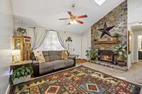 Filled with natural light and cozy charm, this 3- bedroom, 2- bath home offers open living space. The vaulted ceilings with skylights create an airy, open feel, while the stone fireplace adds warmth and character to the main living area. The kitchen features an attached dining space. This home offers a split floor plan providing privacy with the primary suite located separately from the guest rooms. The spacious primary bedroom includes a large walk- in closet and an en- suite bathroom, while the secondary bedroom also features its own walk- in closet. Recent updates include a new HVAC system ( Sept. 2025) and a new water heater ( April 2025) . Outside, enjoy the fenced backyard with large deck, mature trees, complete with space to garden, play, or relax around the fire pit. Storage unit remains, dog house does not convey. Up to 1% lender credit on the loan amount when buyer uses Seller' s Preferred Lender.