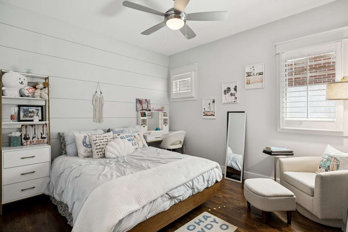 The flexible layout offers three spacious bedrooms on the second floor, and a third- floor bonus room with a rooftop deck plus a versatile flex room ideal for a guest suite or creative studio.