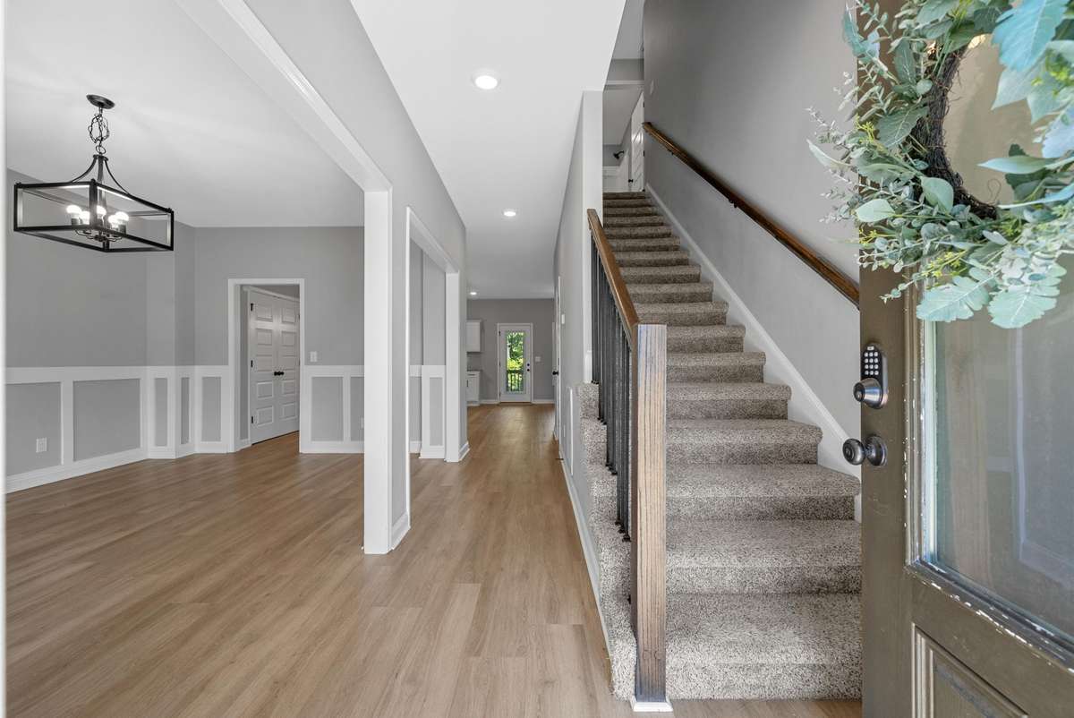 Open and Inviting! The main floor offers a full formal dining room, large living room with fireplace that is open to the kitchen with large pantry, island, abundant cabinet and countertop space, and half bath. 2nd level of home has 2 primary bedroom suites, plus 2 additional bedrooms and laundry room . Lots of upgrades throughout home. Home is at end of subdivision with lots of privacy. One of the bedrooms with bath could also be the bonus/ family room on 2nd level of home