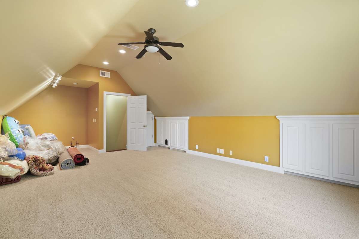 Upstairs, an expansive bonus room with wall- to- wall built- in storage offers endless possibilities—whether you envision a media room, private office, or guest retreat. The bonus area also includes stubbed plumbing, making it easy to add a future bathroom or wet bar. Plus, over 1, 000 sq. ft. of unfinished space provides exceptional potential for expansion, allowing you to truly make this home your own.